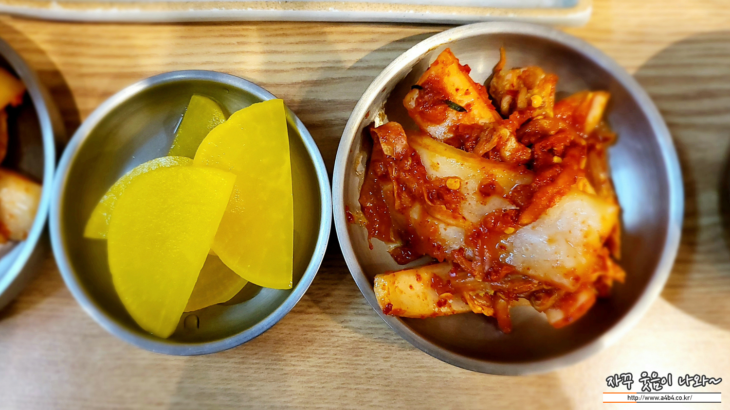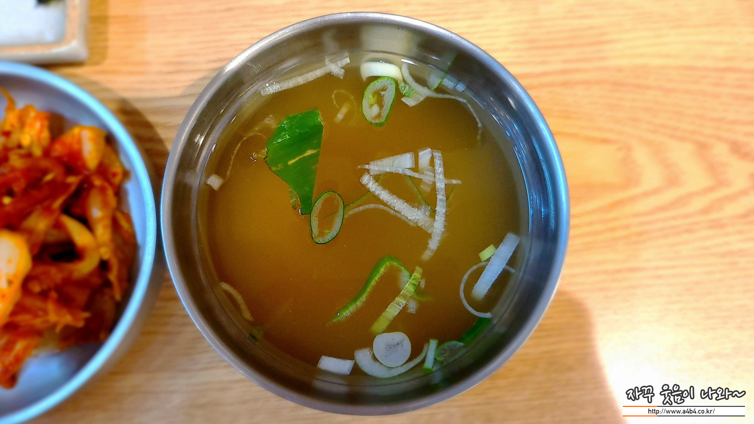 반찬은 단무지와 김치. 그리고 따근한 국물도 같이 나옵니다.