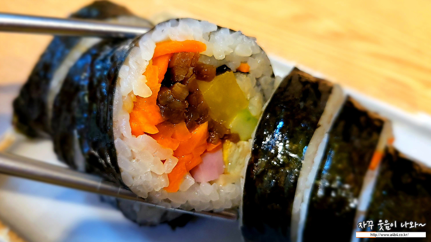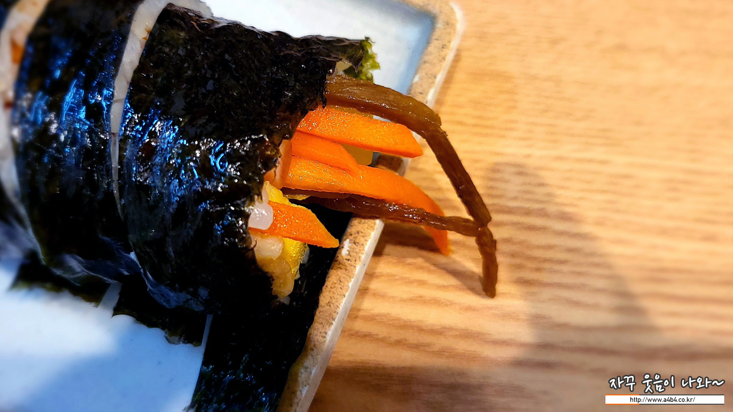 당근, 우엉, 오이, 계란, 단무지가 들어간 김밥. 비빔국수나 잔치국수가 다소 아쉬운 분들에게 추천 드립니다.