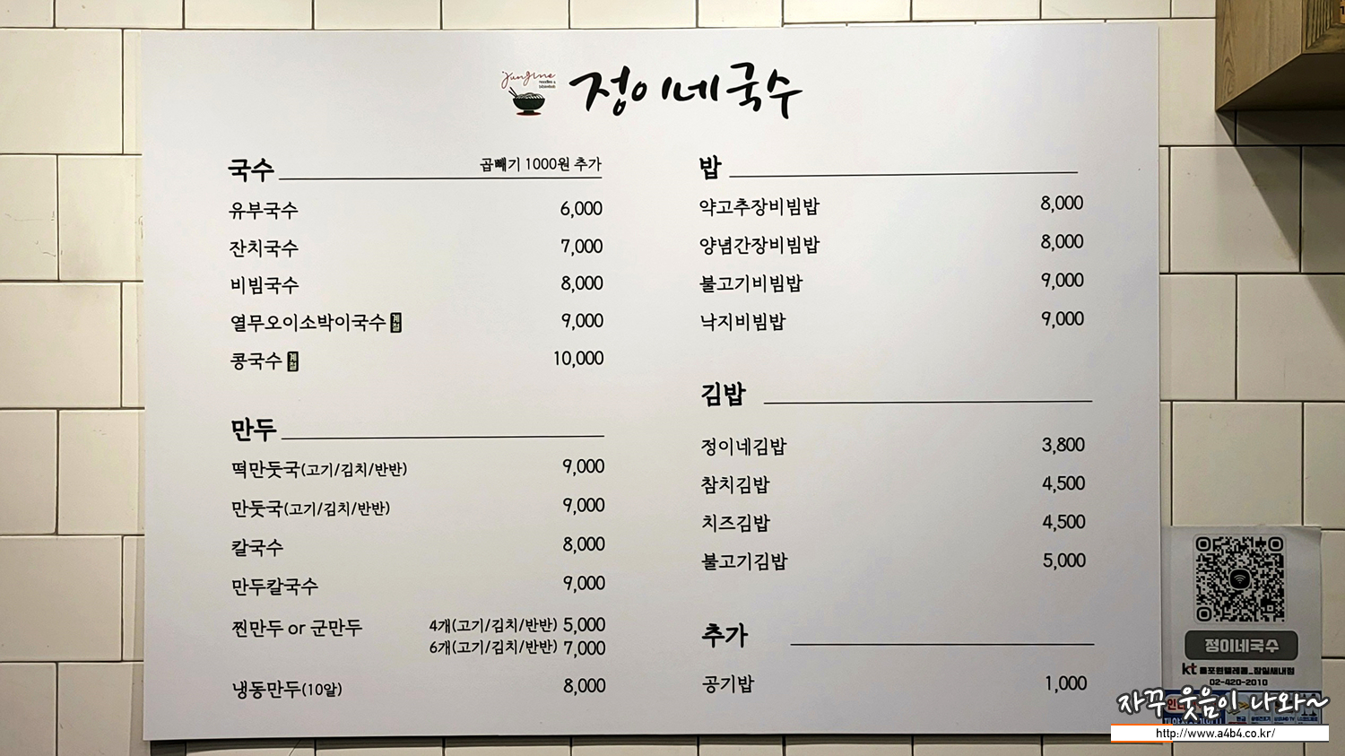 | 정이네 국수 메뉴 및 가격