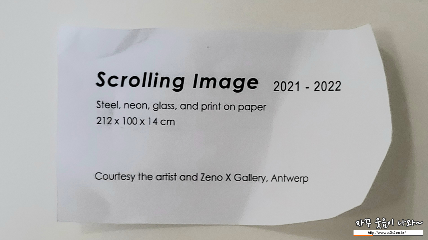 '스크롤링 이미지 Scrolling Image' 는 마틴 마르지엘라가 제작한 드로잉의 복사 이미지가 담겨있는 5개의 스크롤 빌보드로 구성됩니다. 파리 라파예트 안티시페이션에서 선보인 초기작은 1개의 빌보드로 구성되었으나, 이미지의 움직임을 통해 일종의 안무를 만들기 위해 이번 전시에는 4개의 빌보드가 추가되었습니다.