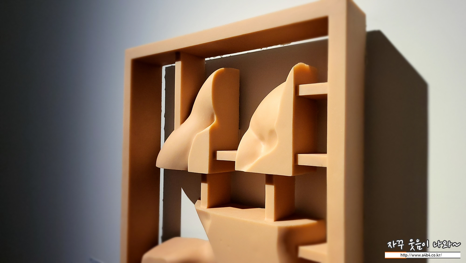 이 작품은 신체 일부를 클로즈업하여 아동용 장난감 세트의 형태로 구성되어 있으며, 작품을 만드는 제작 과정의 한 단계를 노출함으로써 관람객에게 작품을 완성품이 아닌 부분적 과정을 접할 수 있는 기회를 제공합니다.