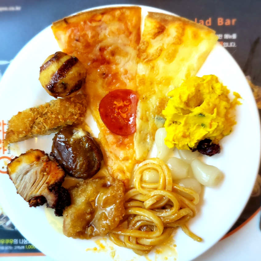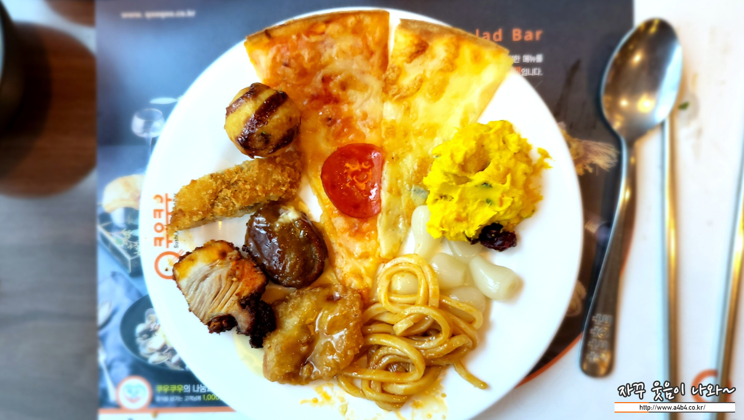 야끼우동, 크림파스타, 알리오올리오파스타, 고르곤졸라피자, 불고기, 깐풍기, 고추잡채, 팔보채 등이 준비되어 있다고 쿠우쿠우 홈페이지에서 안내받았는데 일부 메뉴는 없거나 변경되어 있네요