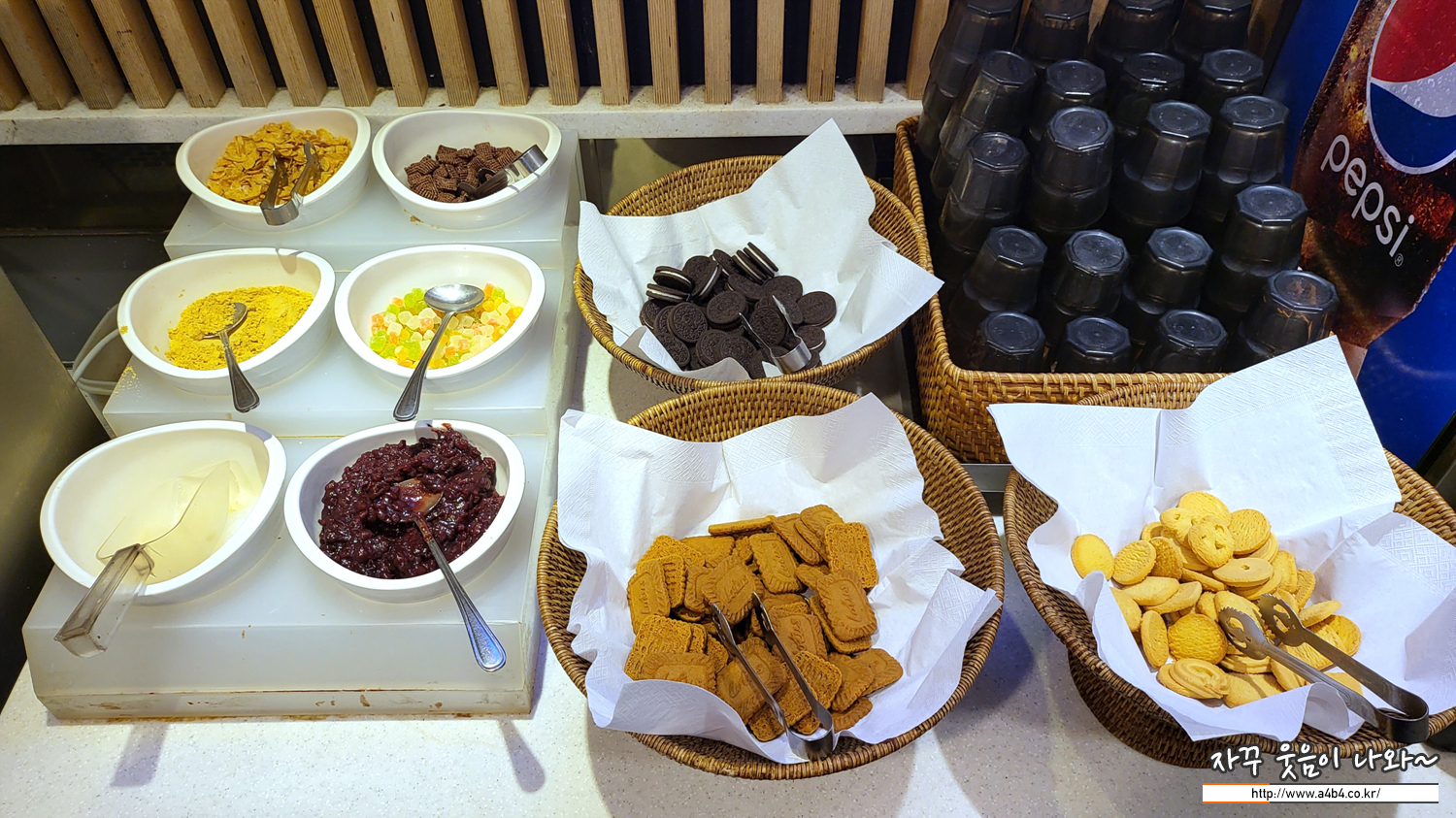 쥬스는 망고랑 하나가 더 있었고요; 커피는 일반적인 원두머신이 준비되어 있네요.