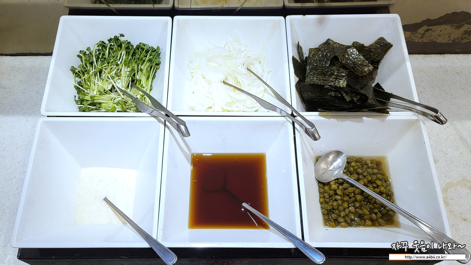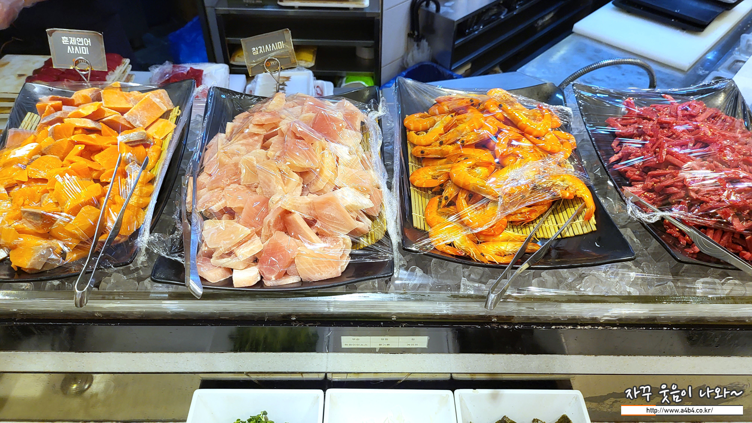 메뉴에는 연어, 게살 샐러드 등이 있다고 되어 있지만 그냥 풀로 변경된 메뉴가 좀 있네요.