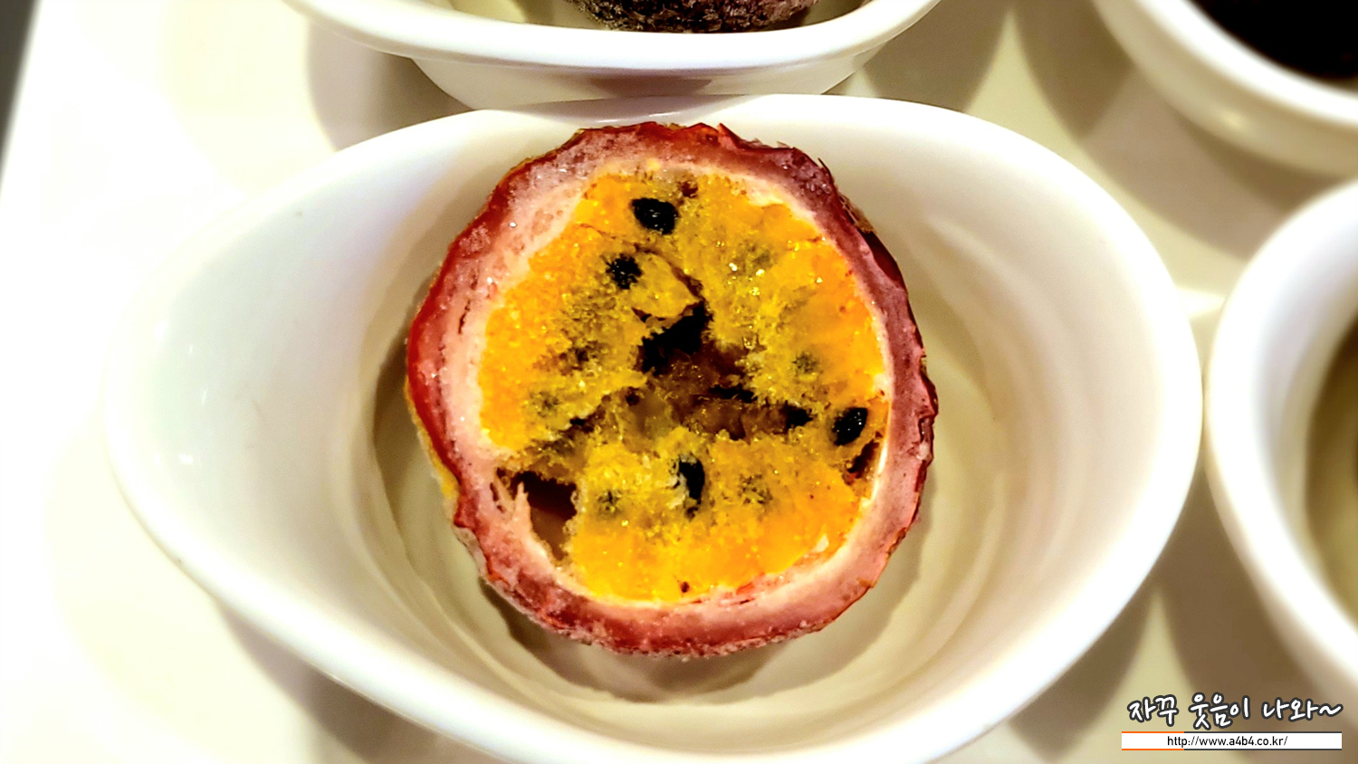 망고와 패션프루트 모두 냉동과일 입니다. 과일이 추가되면 아직 해동 안된 과일들이 나오니 먼저 가지고 오셔서 해동 후 드시는 것을 추천 드립니다. 달달한 망고와 시큼한 패션프루트...
