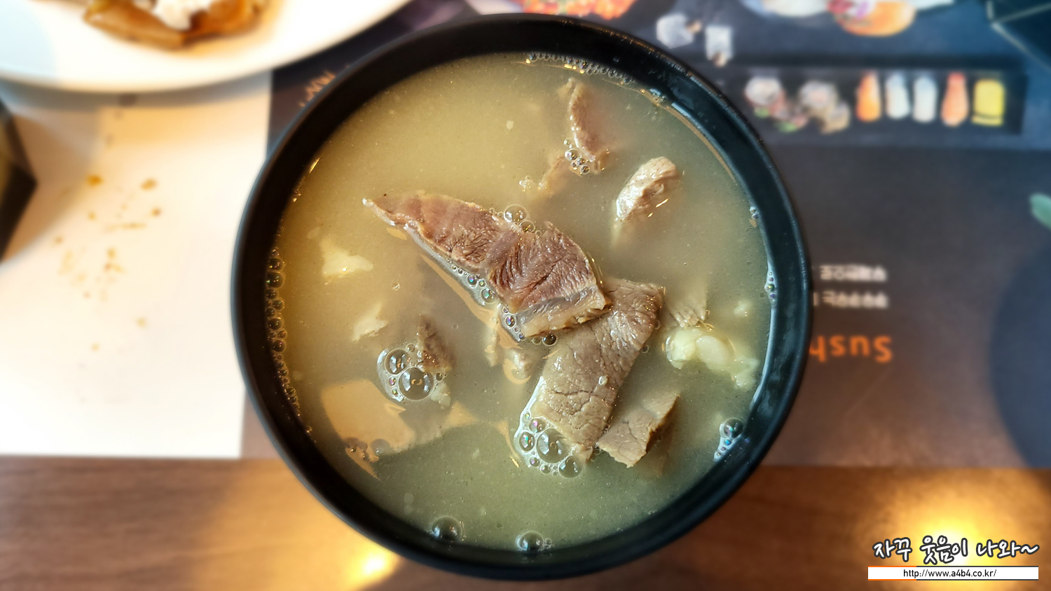 사골국과 크림스프, 우동과 모밀이 있는데요. 사골국물은 기대이상으로 맛있더라는...