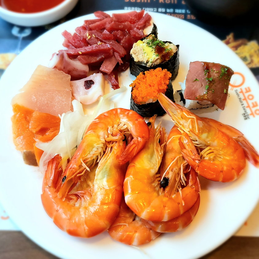 초밥 외에도 롤과 군함도 다양하게 준비되어 있습니다. 초밥은 좋아하지 않는 일행이 있었는데, 그래도 고기 초밥과 롤이 다양하게 준비되어 있어 만족할 수 있었습니다.