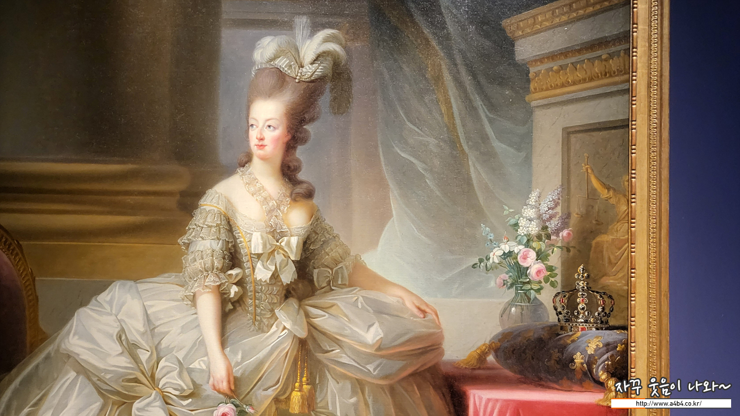마리 앙투아네트로 잘 알려진 마리아 안토니아 는 1774년 프랑스 왕위 계승자 루이 16세와 결혼한다. 프랑스 대혁명 전부터 프랑스 국민들은 ‘정치에 간섭하는 오스트리아 여자’라 부르며 낭비가 심한 어린 왕비를 싫어했다고 한다. 왕비는 실크로 만들어진 전통적인 프랑스식 드레스를 입고 있다. 일생을 악평에 시달렸지만 한편으로는 일찍이 패션의 선구자였던 인물로 재평가를 받고 있기도 하다.