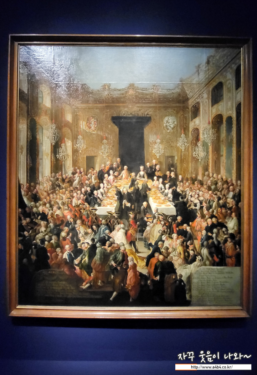 1766년 4월 2일, 호프부르크 왕궁에서 열린 마리아 테레지아의 딸 마리아 크리스티나 대공과 작센 공작 알베르트의 약혼을 축하하는 공식 연회를 그린 것이다. 테이블 중앙에는 요제프 2세 황제와 황후가 자리하고 있고, 황제의 오른쪽에 신랑신부가 있다. 테레지아의 두 남자 대공과 후일 마리 앙투아네트가 되는 마리아 안토니아를 포함한 다섯 여자 대공이 왕위 계승 순서대로 앉아 있다.
