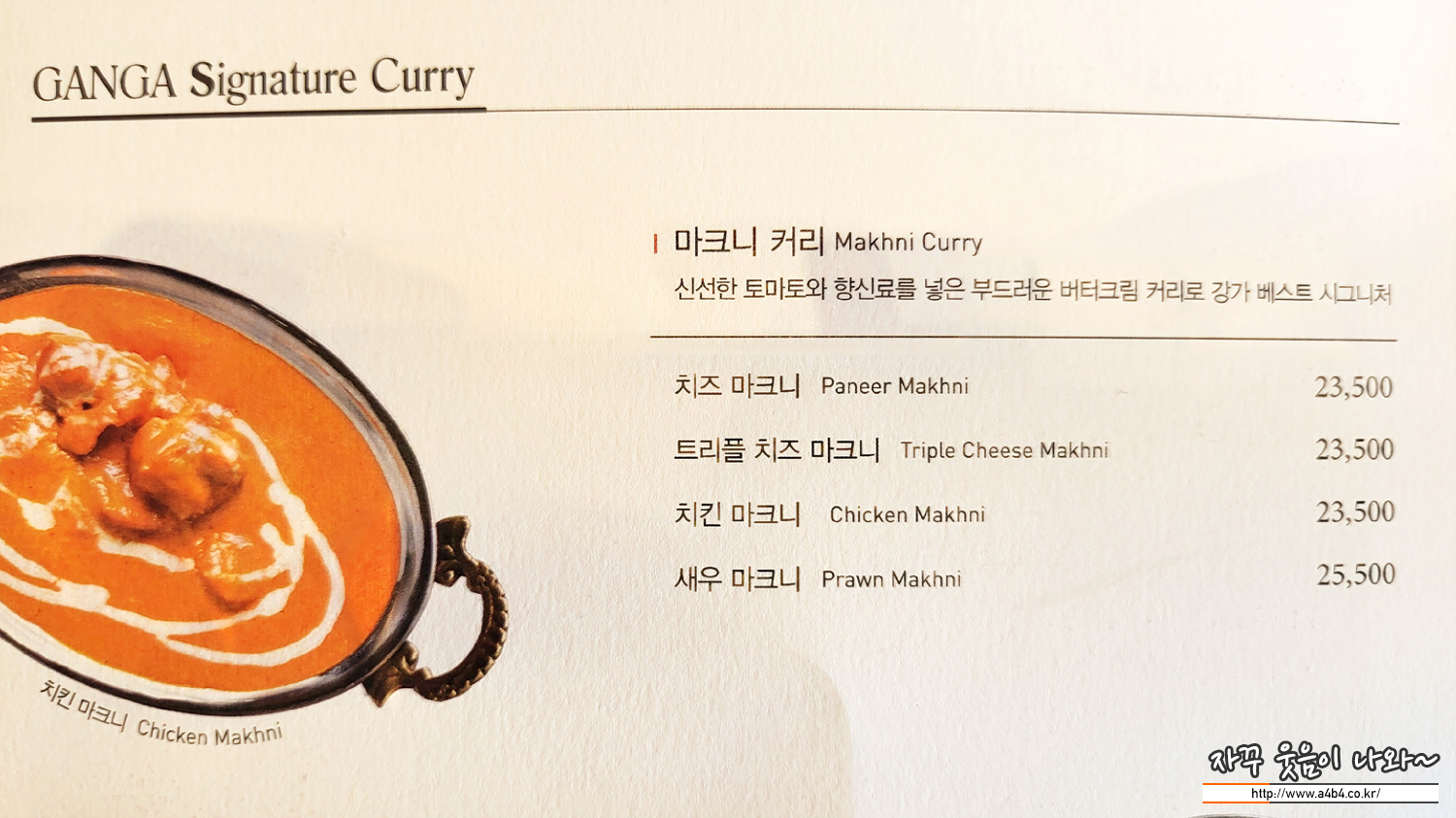 마크니 커리는 토마토와 인도 향신료, 그리고 버터가 들어간 조금 느끼한? 맛의 커리입니다.