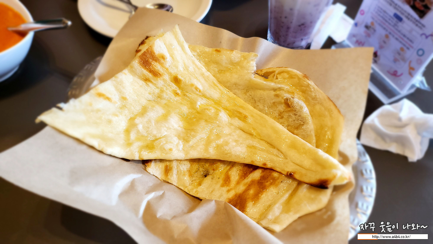 난은 가장 기본인 플레인난과 버터난을 주문 했습니다. 저는 갈릭난을 먹으려 했는데, 버터난이 더 좋다는 딸아이에게 양보를...
