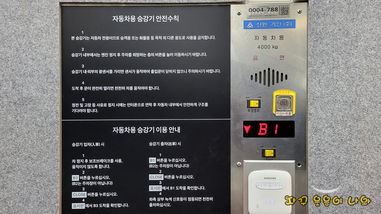 리움 지하주차장 이동은 차량용 주차장 리프트를 이용해세 셀프로 이동하셔야합니다. 운전자와 동승자 탑승해서 같이 이동이 가능하고요. 엘리베이터 공간과 길이도 넓어서 대형 SUV 차량도 이용이 가능합니다.