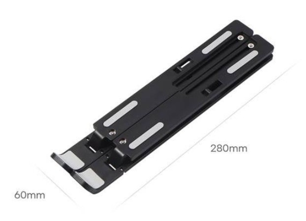 어뮤즈 하우스 노트북 거치대는 X자 타입 레일방식으로 크기를 조절할 수 있습니다. 높이는 280mm 너비는 60mm 부터 215mm 까지 너비 조절이 가능합니다.
