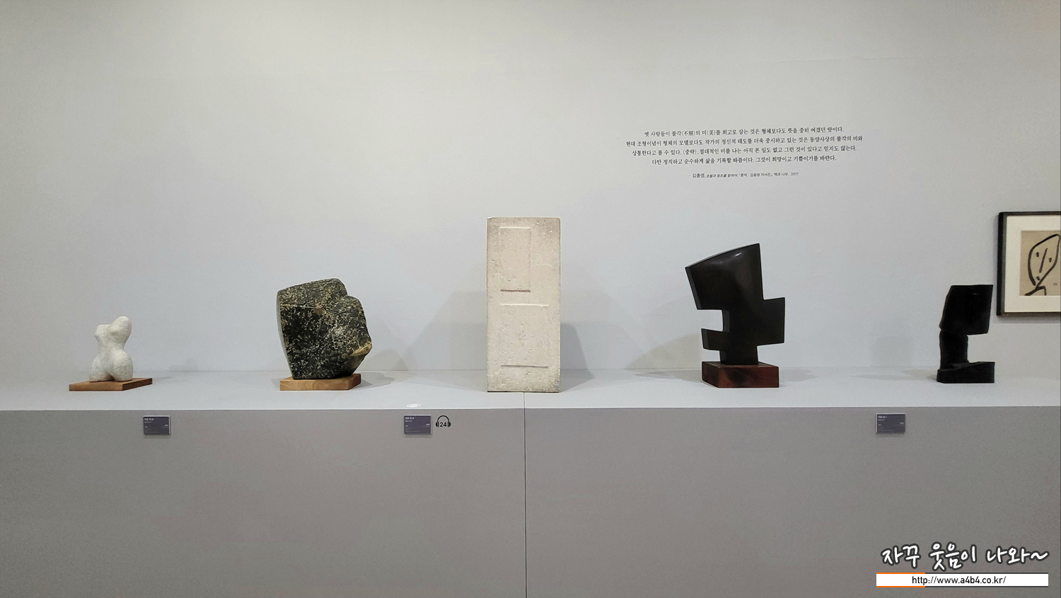 이제 아래층으로 내려가 마지막 '조각, 시대를 빛고 깎고' 섹션을 관람하시겠습니다.