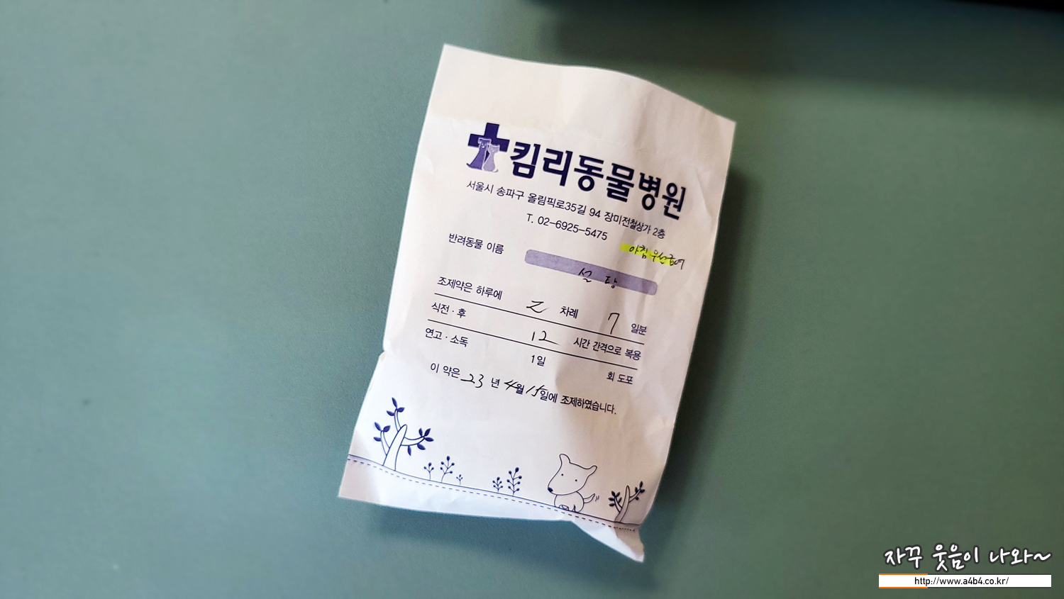 약은 일주일치가 나왔네요. 아침과 저녁 하루 두 번 복용합니다 .첫 3일은 항생재 등으로 아침약은 조금 다르네요.