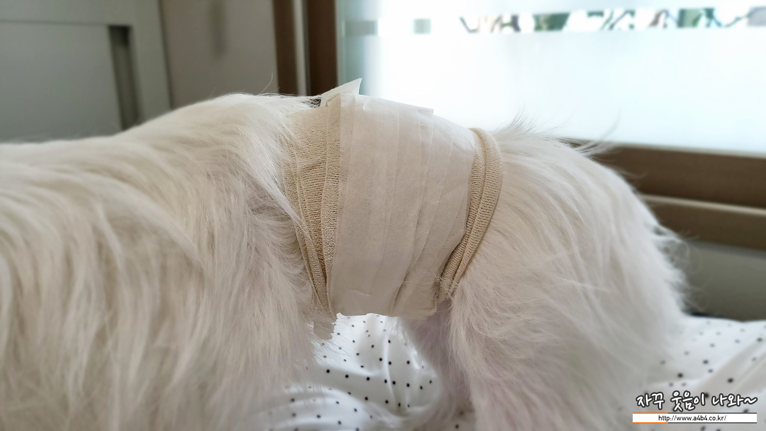수술한 허리부위는 이렇게 지혈과 감염을 막기 위해 붕대로 압박처리되어 있습니다. 내일 병원에서 제거할 예정이고. 만약 풀어진다면 그냥 제거하라고 하시네요.