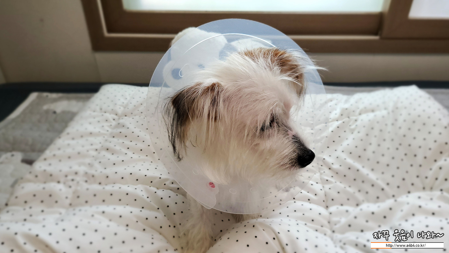 상처부위를 혀로 핧는 등의 문제를 방지하는 목적으로 불편해 하더라도 익숙하게 만들어야 한다고 하네요.