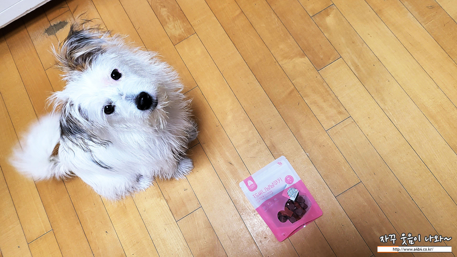 오늘의 강아지 간식을 시식해줄 분은 바로 '설탕이'