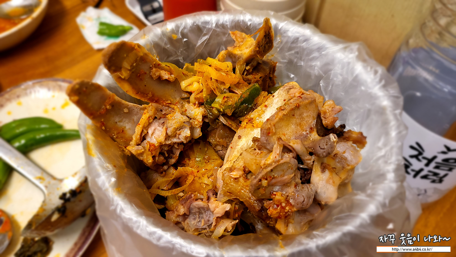 감자탕 뼈다귀 다 발라먹고, 라면사리 하나 주문합니다.