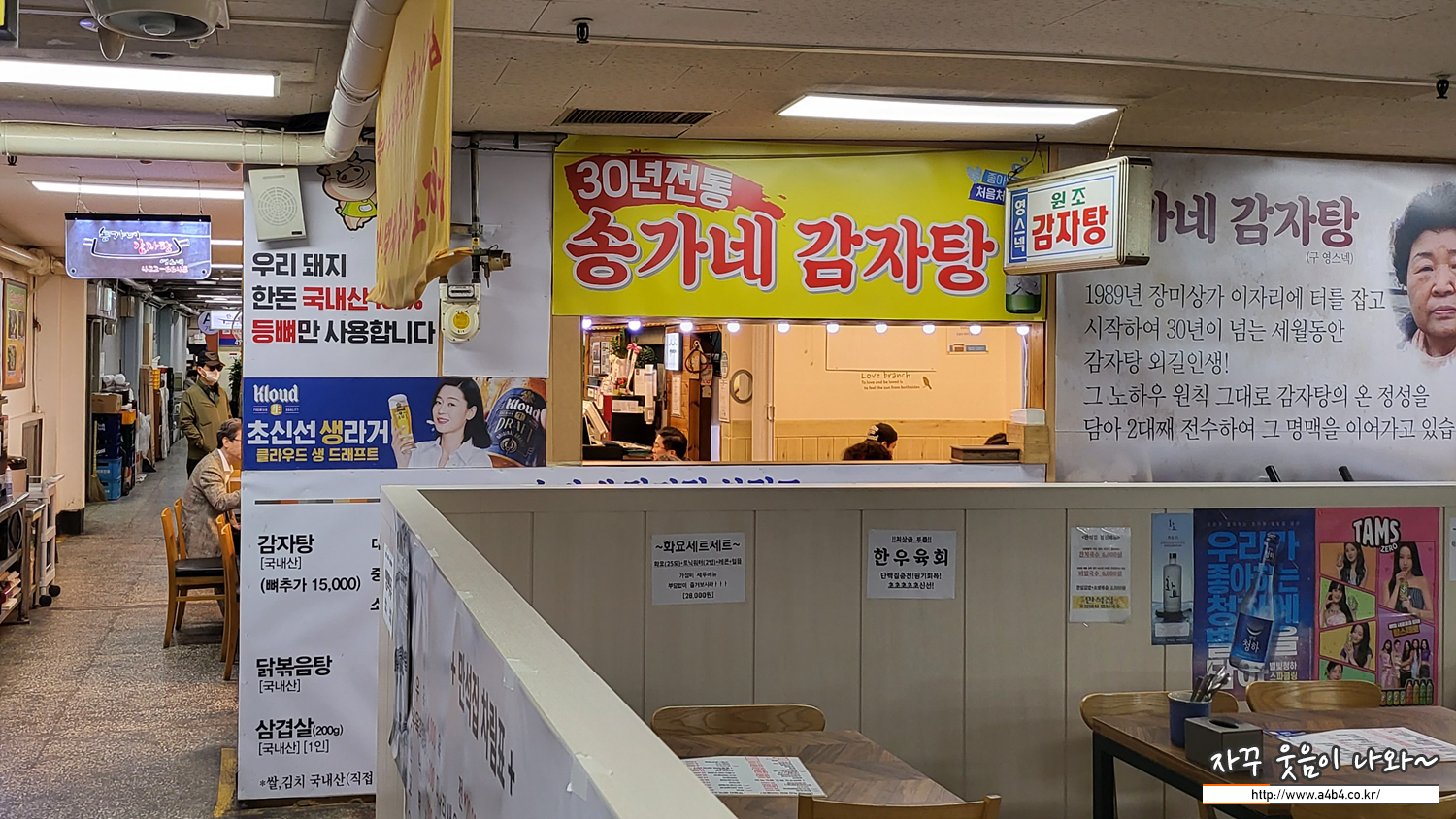 실내는 오래된 감자탕집 분위기가 납니다. 워낙 상가가 노후된 곳이어서 이 정도면 깔끔하게 정리하고 운영한다고 봐야겠죠. 사람이 많이 없는 주말 오후인데도. 이곳 장미상가 지하에서도 손님이 많은 식당 중 하나로 보이네요.