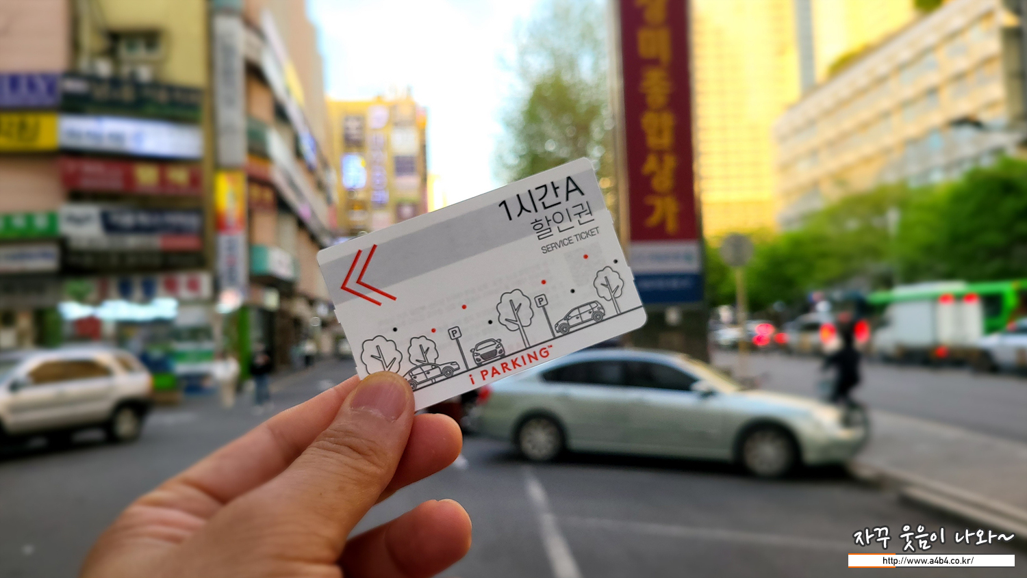 식사 후 결제시 주차권 요청하시면 이렇게 1시간 무료 주차권을 주시고요. 출차시 이용하시면 됩니다.