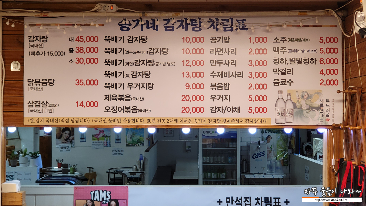 | 송가네 감자탕 메뉴 및 가격