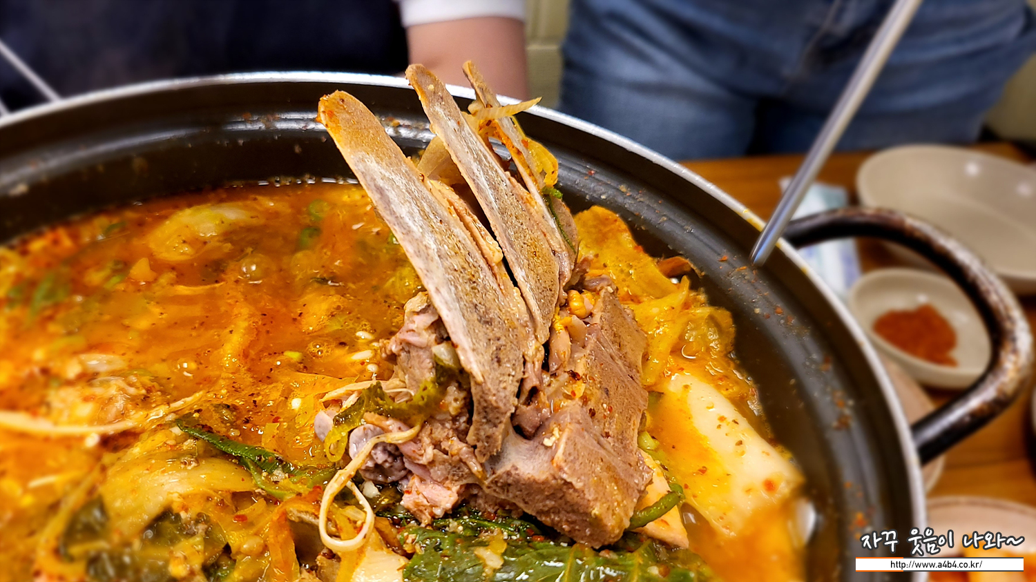 감자탕 뼈다귀 다 발라먹고, 라면사리 하나 주문합니다.