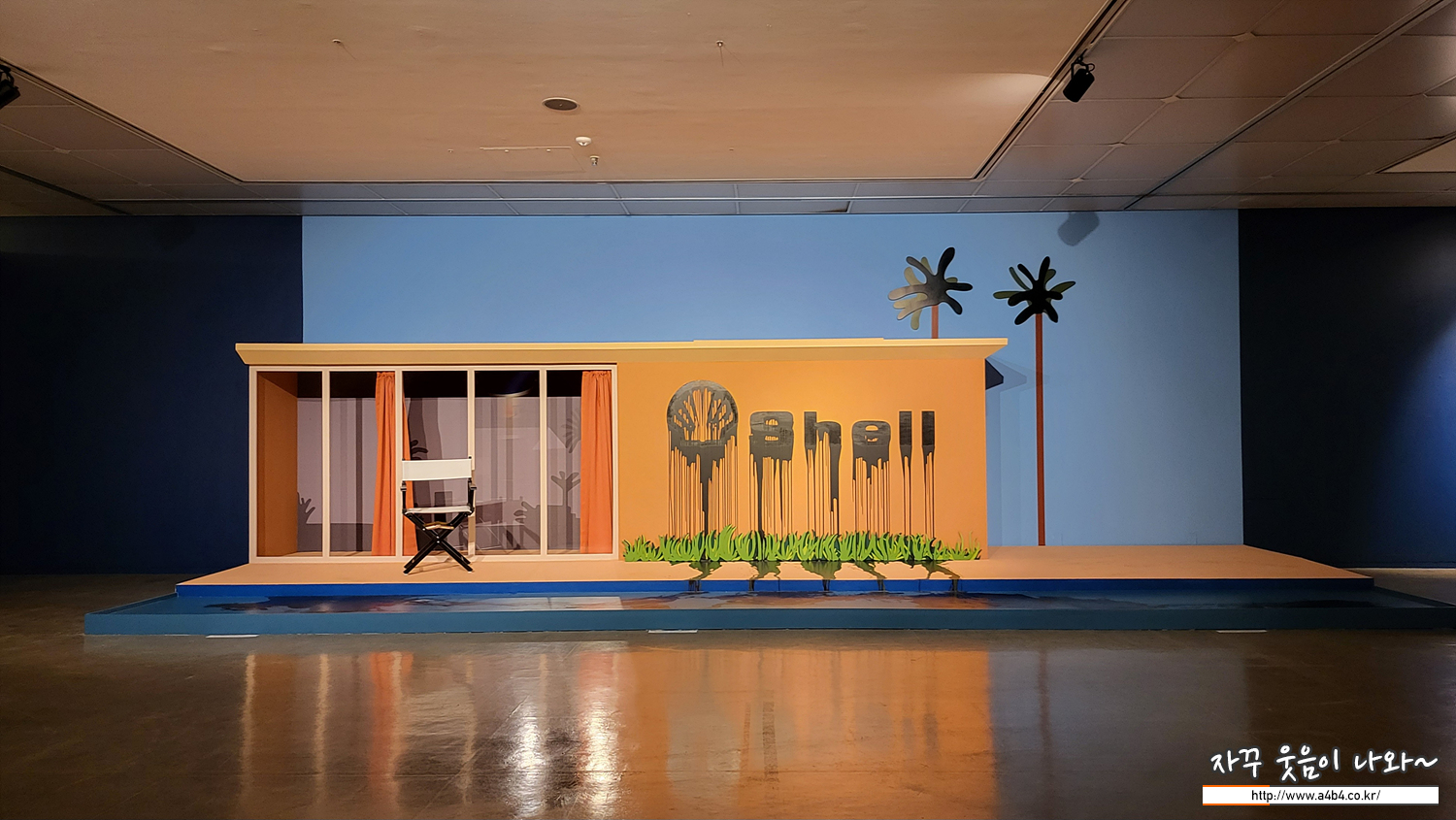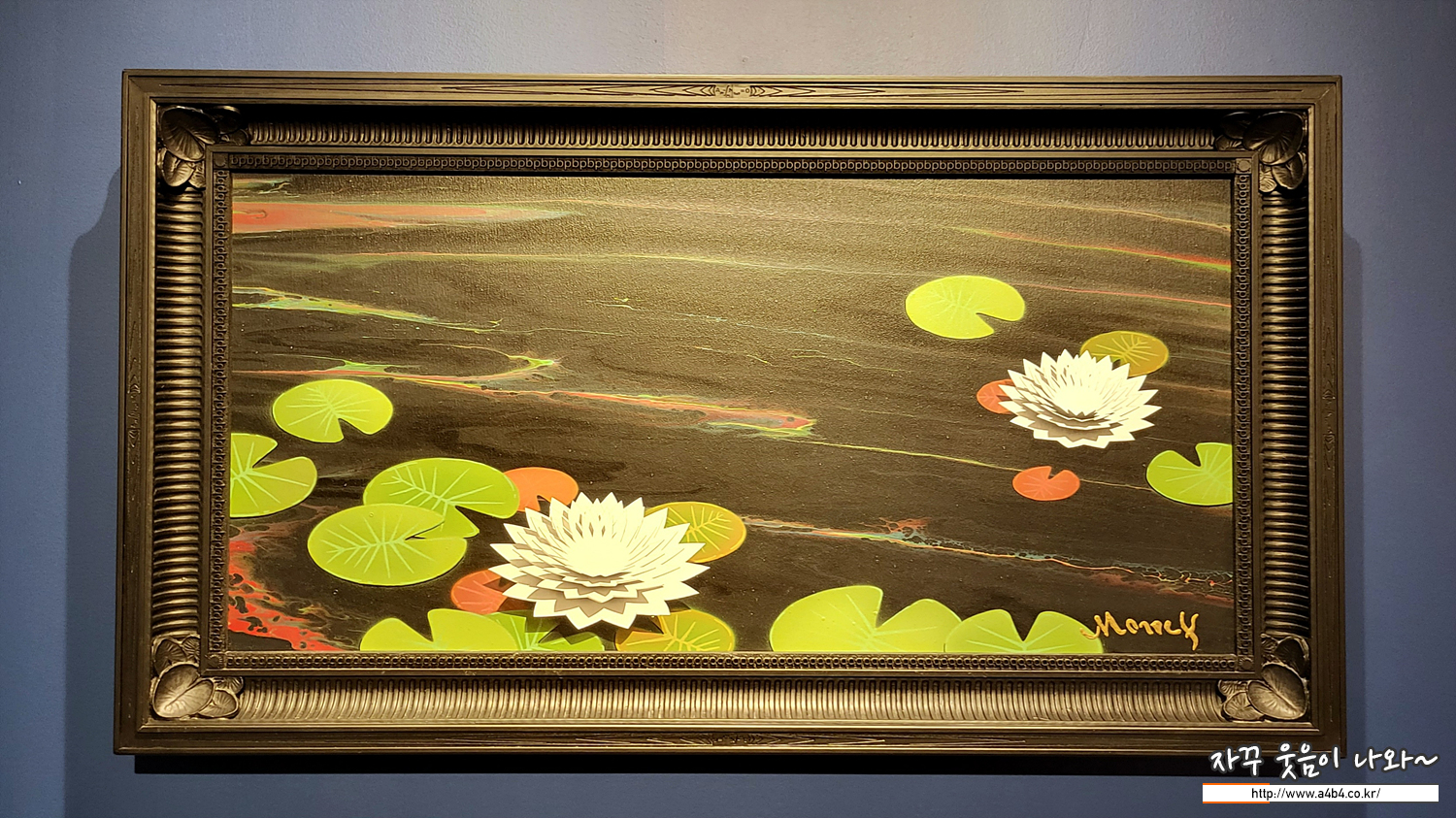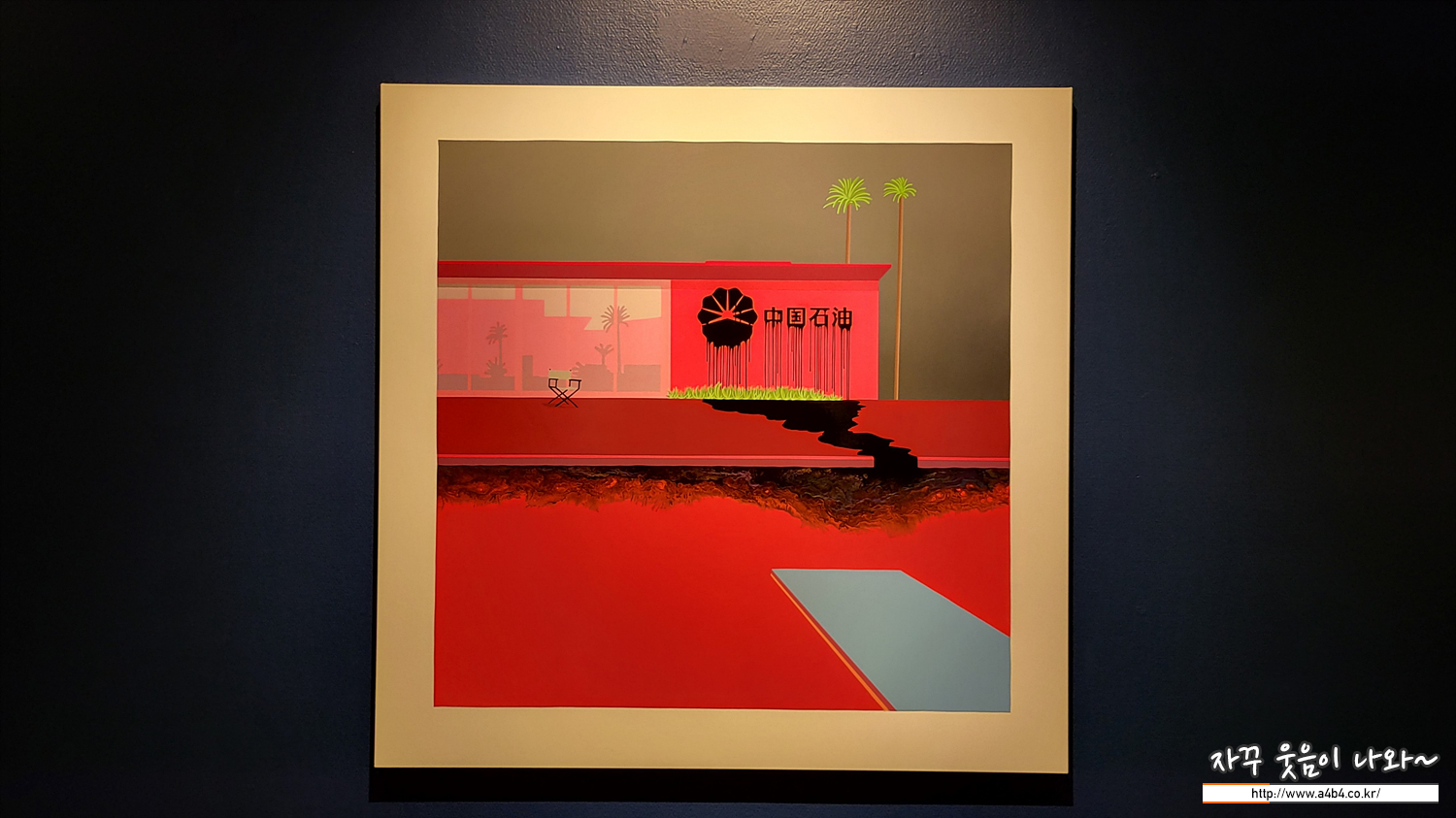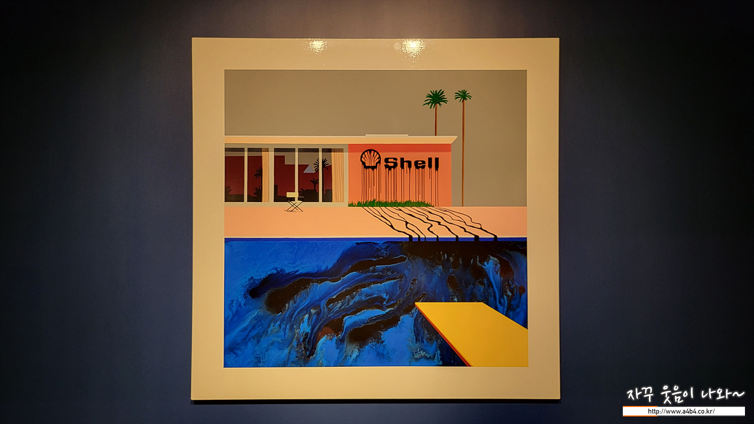다시 쉘로 돌아와서 이 연작이 다수 전시되어 있는데요. 하나하나 이동하면서 보면 마치 쉘 로고에서 흘러나오는 원유가 모네의 수련이 있는 연못을 점점 검게 오염시키는 느낌이 들게 합니다.