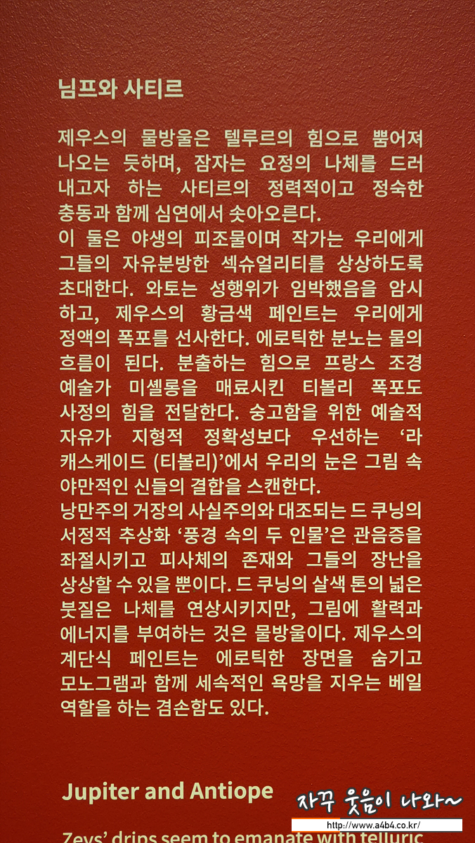 제우스 개인전 관람소요 시간은 개인차가 있겠지만 90분 전후 생각됩니다. 사진촬영 가능
