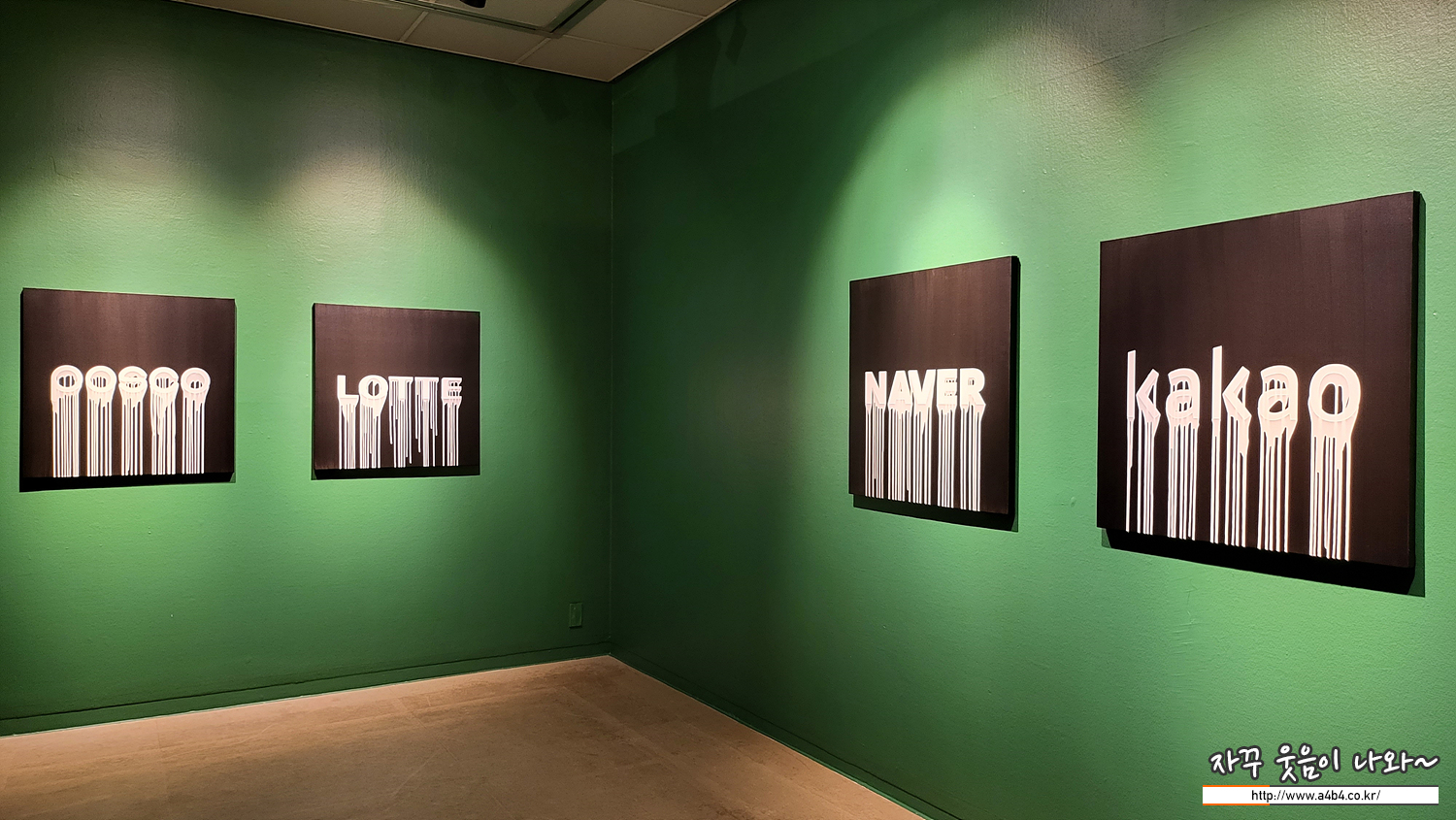 이번 예술의전당 한가람미술관에서 열리고 있는 룸711 전시회에는 국내 대기업인 삼성, LG, 포스코, 롯데, 기아차, 현대 등의 글로벌 대기업의 로고심볼을 활용한 작품들도 전시되어 있습니다.