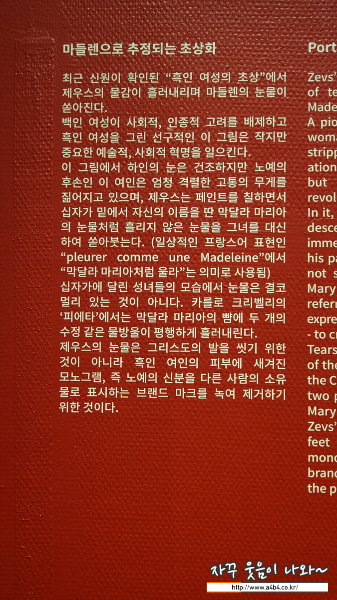 최근 신원이 확인된 흑인 여성의 초상"에서 제우스의 물감이 흘러내리며 마들렌의 눈물이. 쏟아진다.