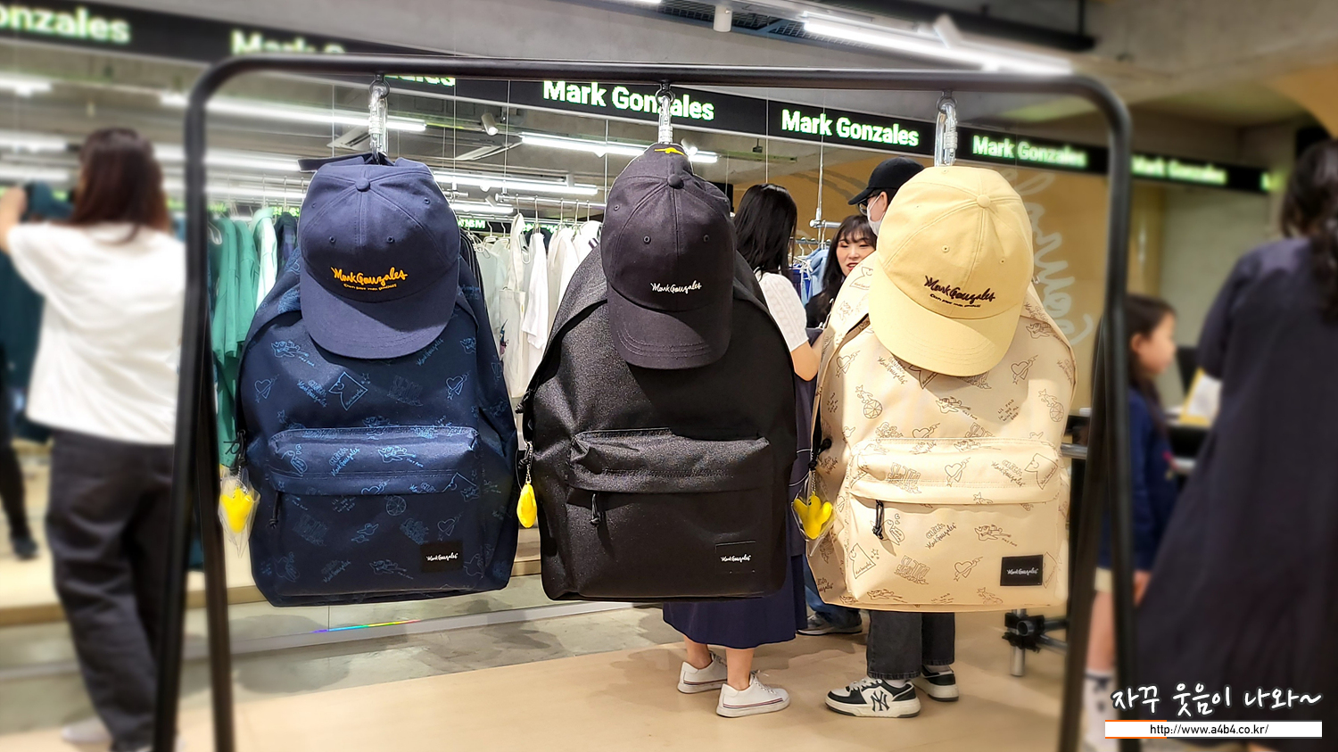 백팩은 두가지 타입 여섯가지 제품이 준비되어 있고요. 마크곤잘레스 가방과 깔맞춤으로 모자까지 준비되어 있습니다.