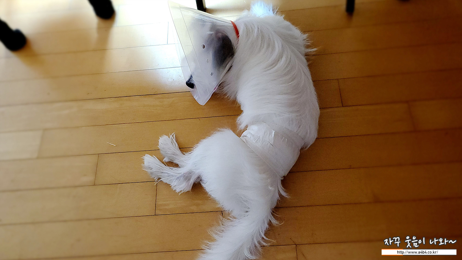 강아지 중성화 수술후 주의사항 중 하나가 1주 이상 외출하지 않고 안정적인 자세가 중요한데요. 우리집 설탕이는 망한 것 같습니다.