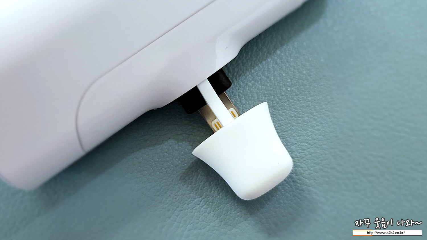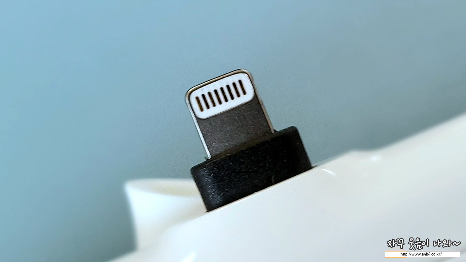앞에서도 언급했지만 오늘 리뷰하는 제품은 아이폰의 8핀 단자와 호환되는 제품입니다. 접촉단자 보호를 위한 덮개가 있습니다. 이런 구조는 별도의 케이블 휴대가 필요 없는 장점이 있습니다.