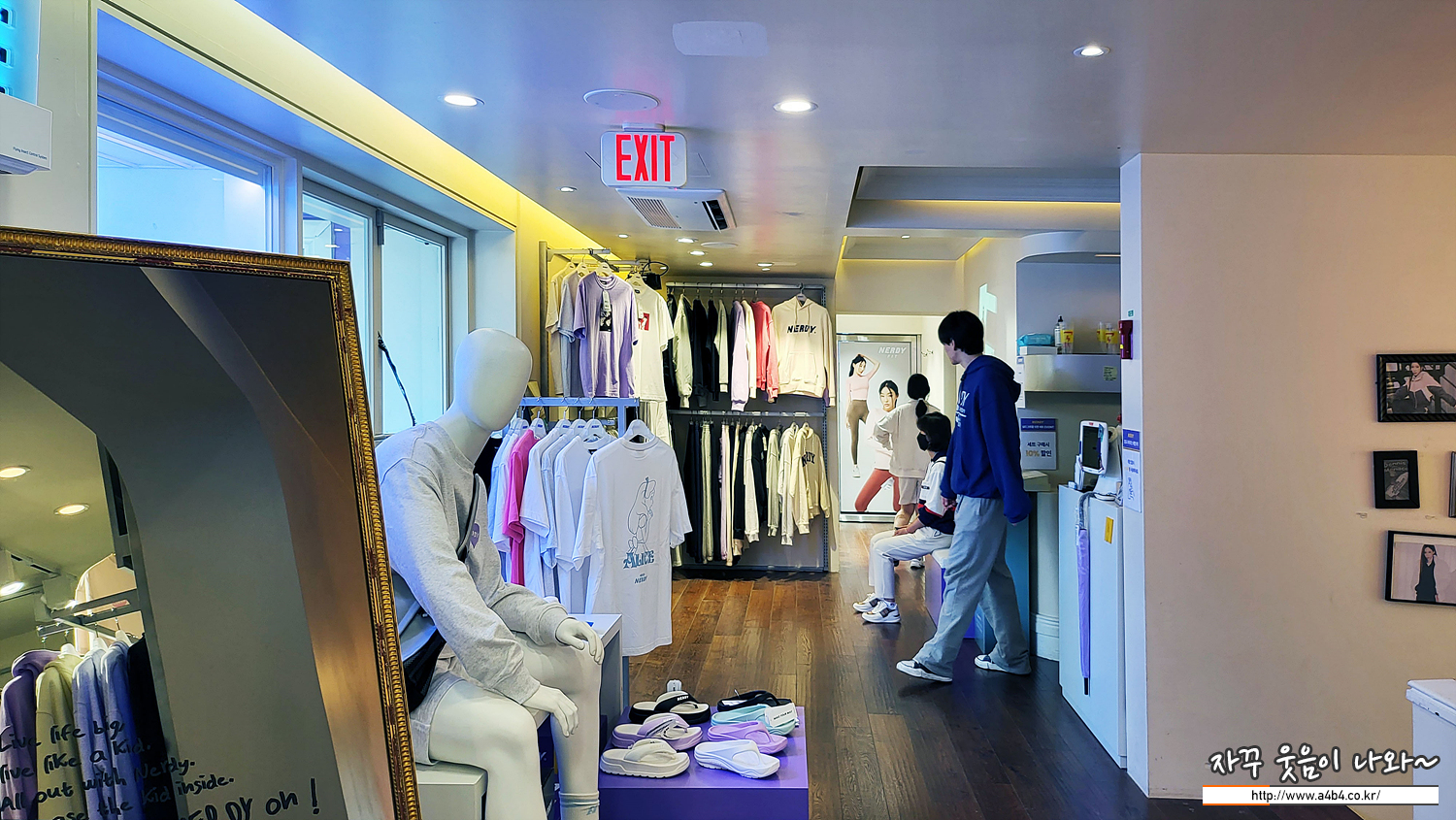 이쪽은 주로 널디 트레이닝복과 반팔 중심으로 의류가 진열되어 있는 곳입니다.