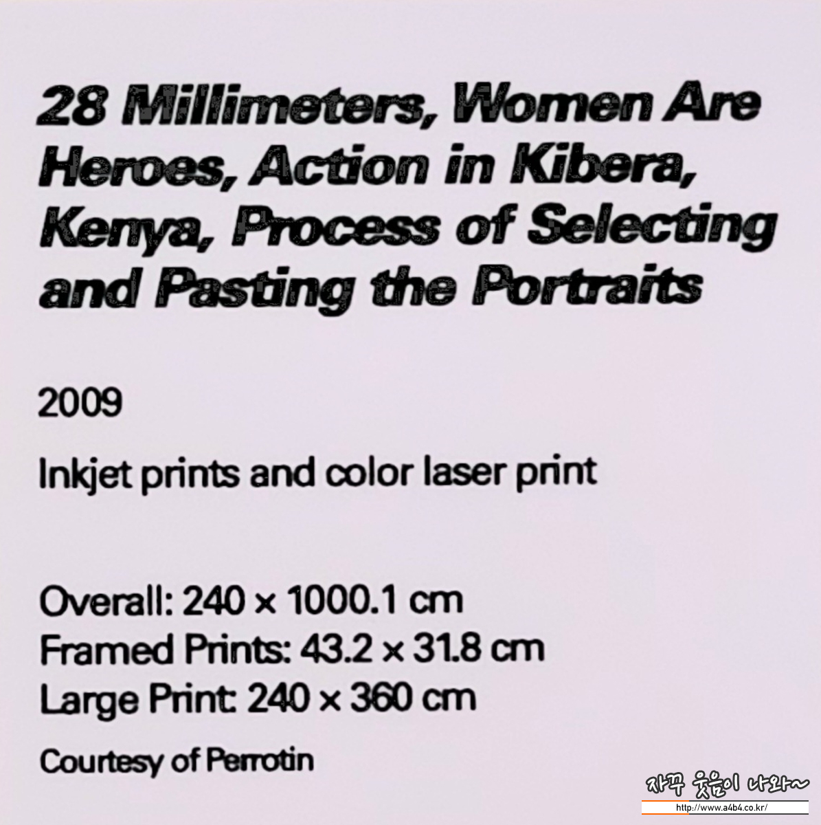 라이베리아 프로젝트 이후, 제이알은 케냐 나이로비에 있는 슬럼가 '키베라'에 가서 <여성은 영웅이다 > 를 진행합니다. 키베라에 도착한 작가는 두 가지를 깨닫게 됩니다. 첫째는 아무도 키베라를 찾지 않는다는 사실과, 둘째는 그곳 주민들은 파리 빈민가 사람들처럼 언론이 자신들을 왜곡해 보도한다고 생각한다는 사실입니다. 이후 제이알은 키베라 주민들과 의견을 나누며 어떠한 방식으로 작업을 진행할지 고민합니다. 그러다 하늘에서 세상을 내려다 볼 수 있는 위성 지도 '구글 어스'를 떠올리며, 사진을 지붕에 붙이는 아이디어를 제안했고, 지역 주민들과 대화 끝에 그들의 의견을 반영해 그동안 사용한 종이가 아닌 비를 막을 수 있는 비닐에 여성의 얼굴을 인쇄해 지붕에 설치를 합니다. 전쟁이 일어나면 여성은 약자로서 가장 먼저 피해자가 되었지만, 가족을 지탱하고 곳꽃하게 지역사회를 단합시키는 것은 바로 여성의 힘이었습니다. 또한 남성은 주민들을 보살피고 벽이 무너지지 않도록 굳건히 붙든 존재였습니다.