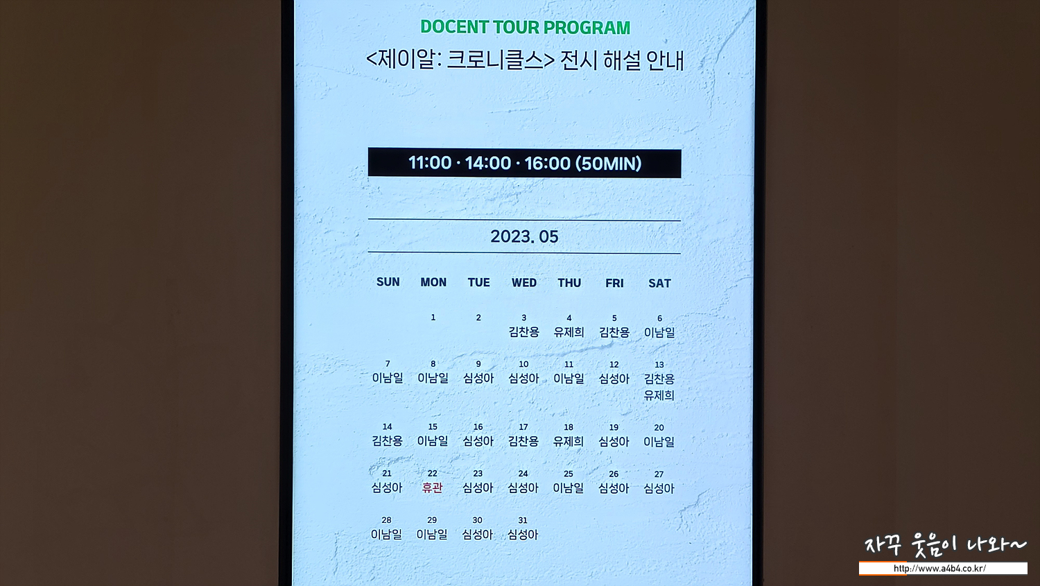 전시회 소개전에 제이알 크로니클스 전시회 개요와 도슨트, 오디오가이드, 관람시간 등 기본정보 먼저 공유합니다.