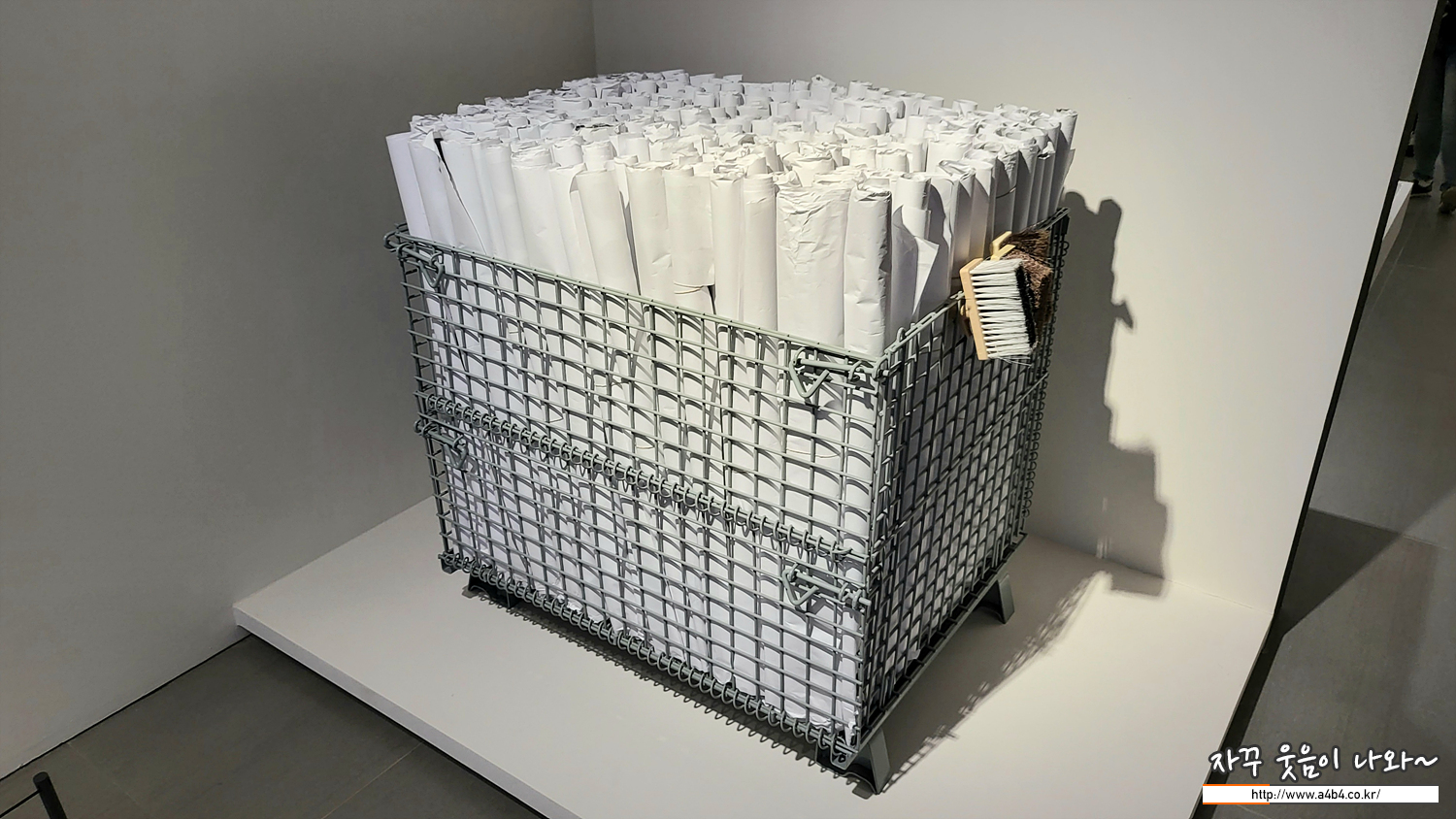 아래는 그가 작업하는 종이샘플이 전시되어 있습니다. 제이알 크로니클스 전시장 곳곳에 설치되어 있는 멀리미디어 영상을 보면 작품의 설치 부터 철수(제거) 과정을 감상할 수 있습니다.