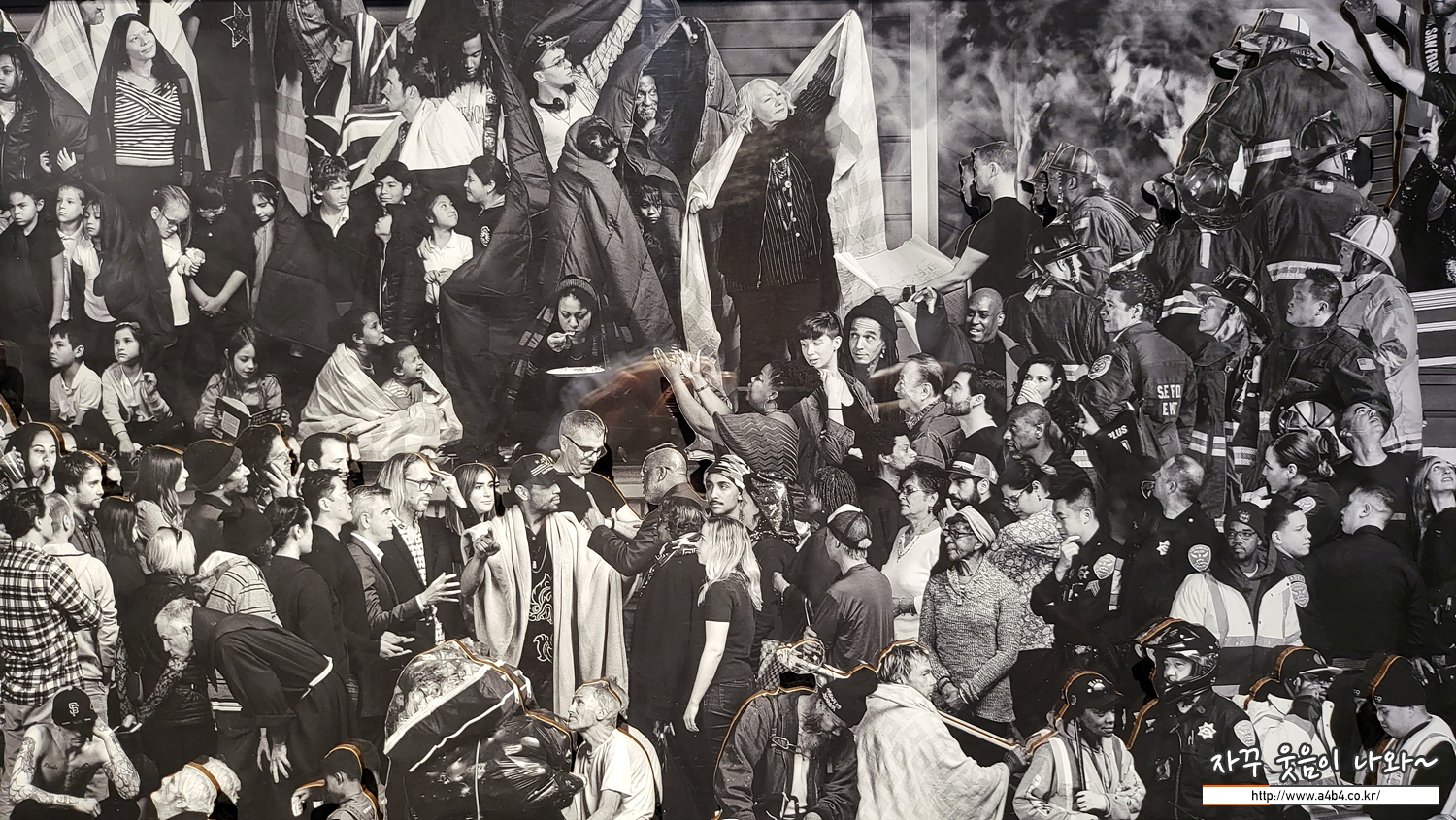 앞에서 850명의 사진을 찍었다고 했는데요. 해당 작품은 한 명 한 명 인터뷰후 개별촬영을 진행하고 이후 합성한 작품이라고 합니다. 스케일도 대단하지만 이런 작품을 구상할 수 있다는 것부터가 거장의 반열에 오를만 하다는...