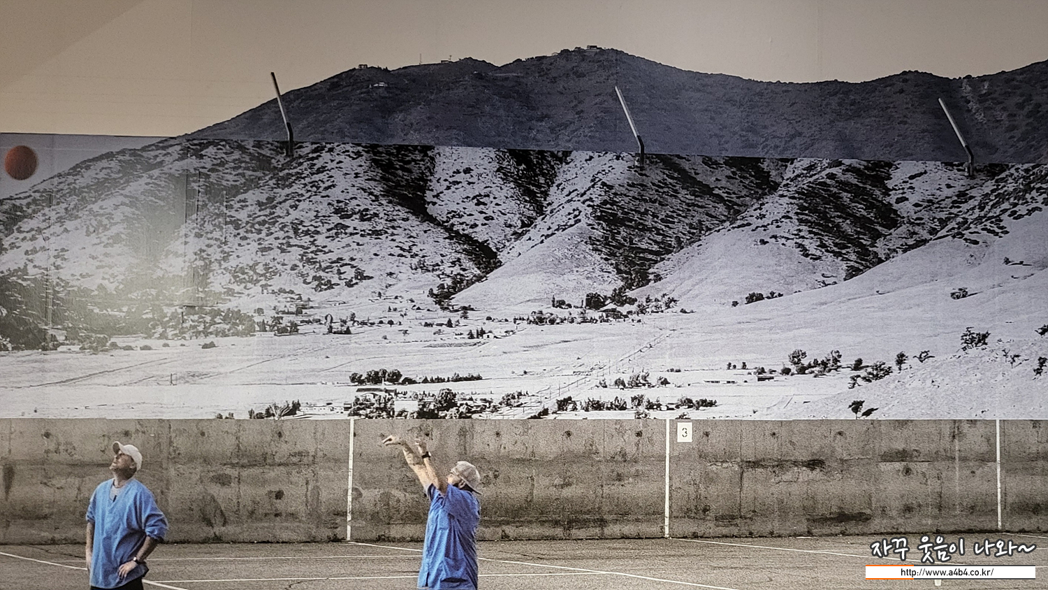 제이알 공공미술 철학은 볼 수 있는 좋은 예. 교도소의 10미터 담벼락이 뒤의 산과 어떻게 조화를 이루는지...