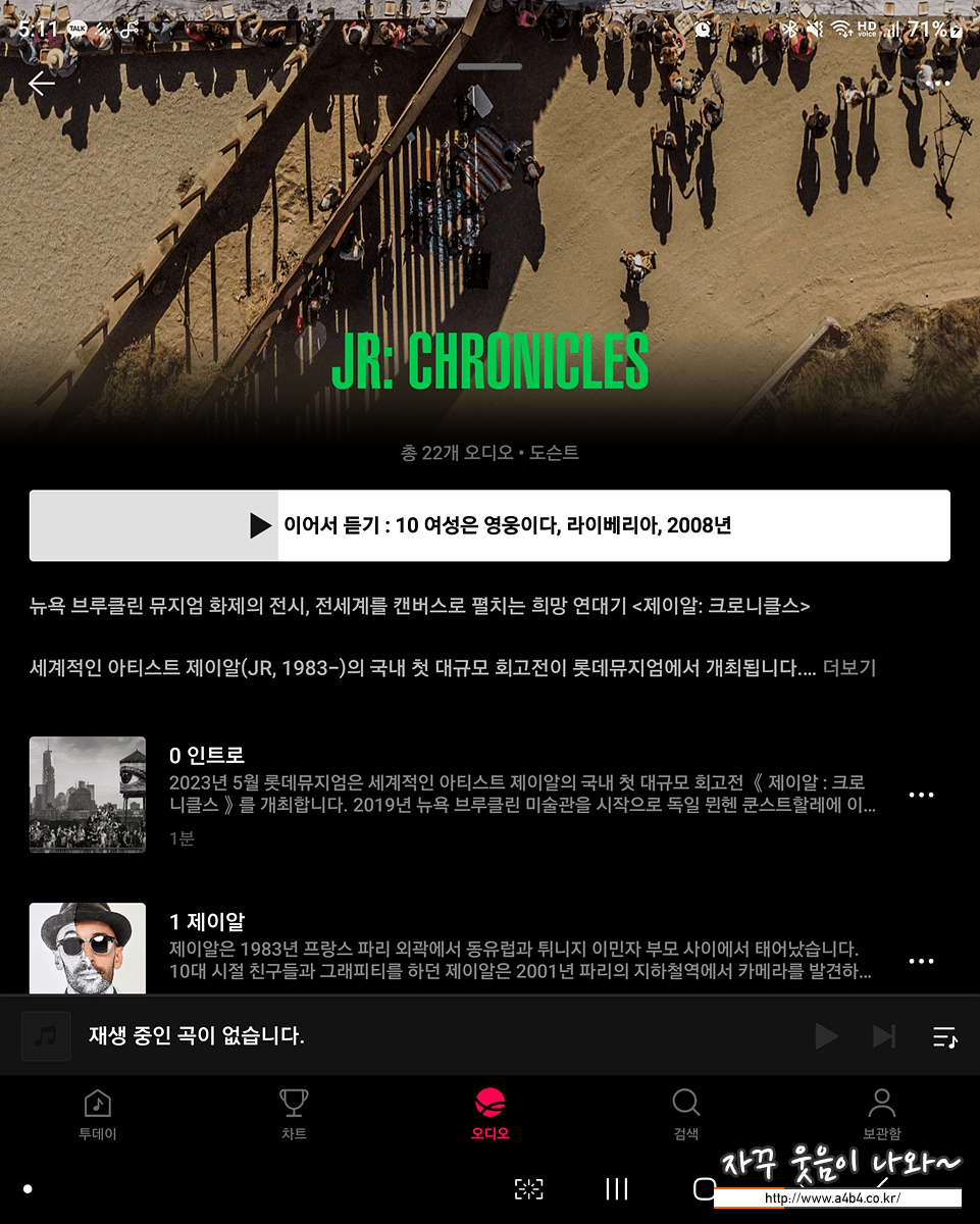 바이브 (VIBE)앱을 통해 제이알 크로니클스 전시회 오디오가이드를 무료로 이용가능합니다. 무료라고 부실하지 않고요. 상당히 알찬 내용으로 제공됩니다. 이어폰은 필수 입니다. 처음 이용하시는 분들은 앱도 미리 설치하시고 오세요.