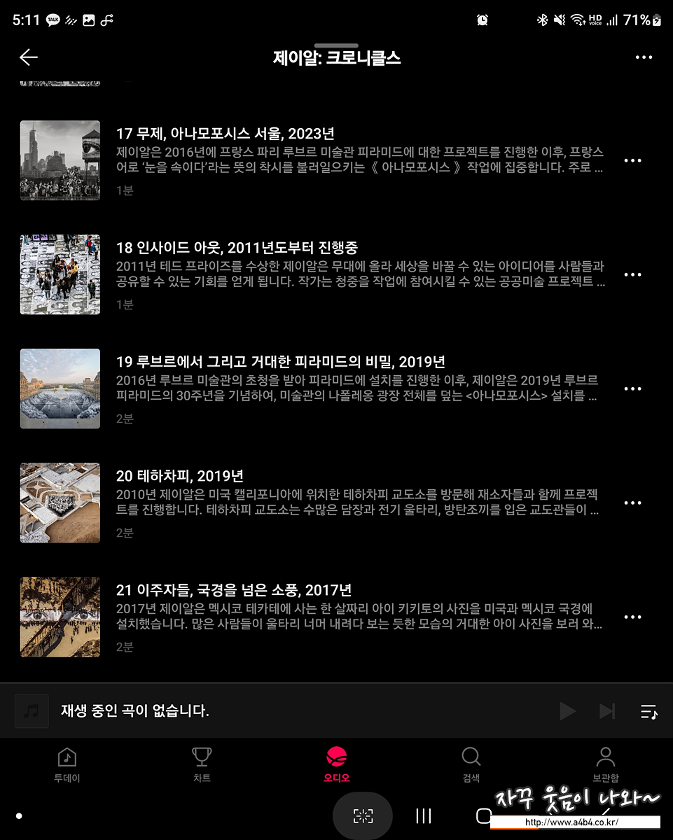 바이브 (VIBE)앱을 통해 제이알 크로니클스 전시회 오디오가이드를 무료로 이용가능합니다. 무료라고 부실하지 않고요. 상당히 알찬 내용으로 제공됩니다. 이어폰은 필수 입니다. 처음 이용하시는 분들은 앱도 미리 설치하시고 오세요.