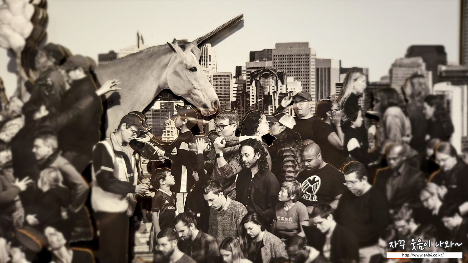 인종계 계층의 다양성...동성애 상징인 유니콘과 키스하는 동성애자. SF가 미국에서 가장 개방? 된 지역이죠?