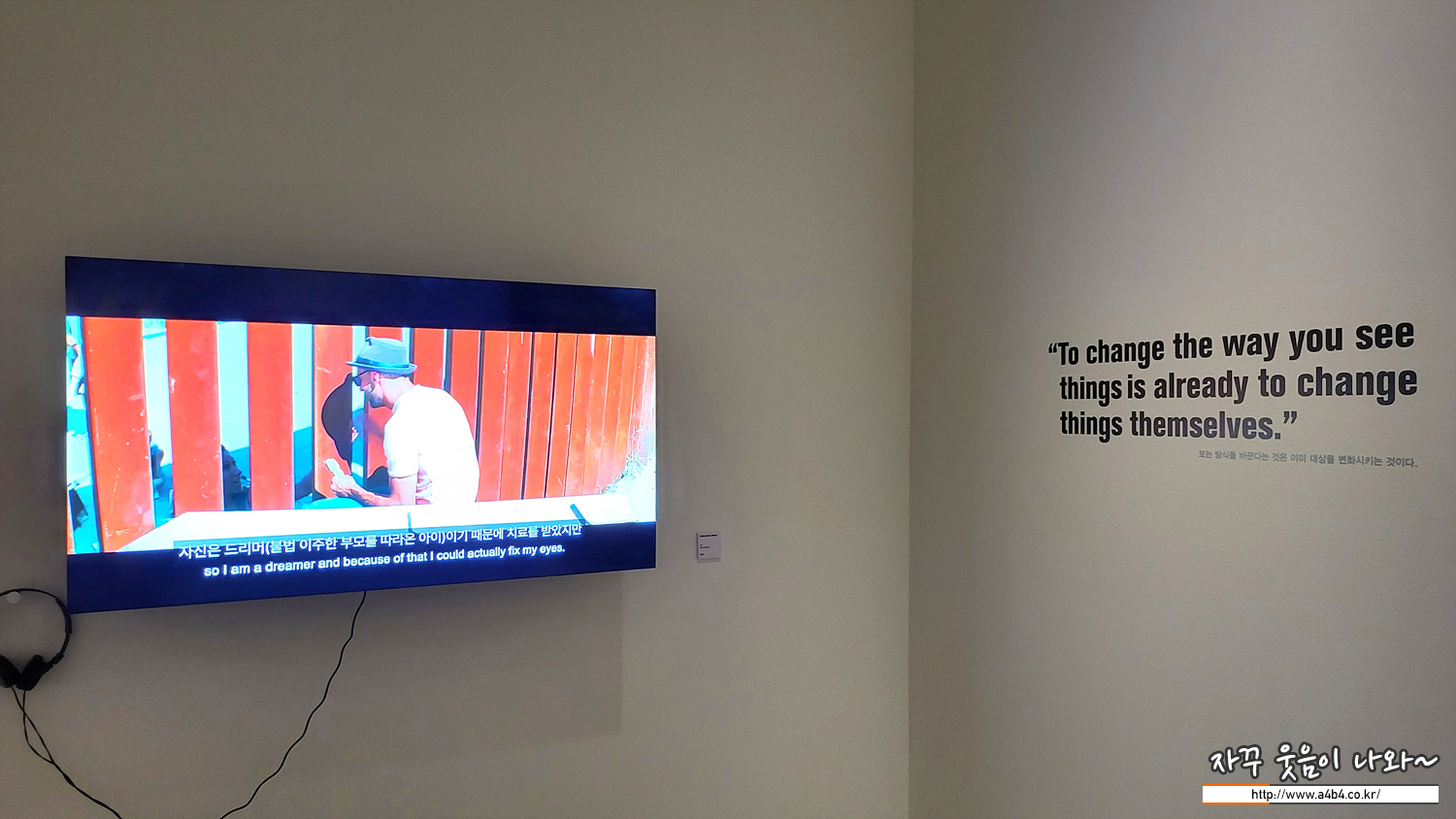 전시장 한켠에는 세계지도와 함께 지도위에 핀이 박혀 있습니다. 이곳들은 바로 인사이드 아웃 프로젝트에 참여한 국가