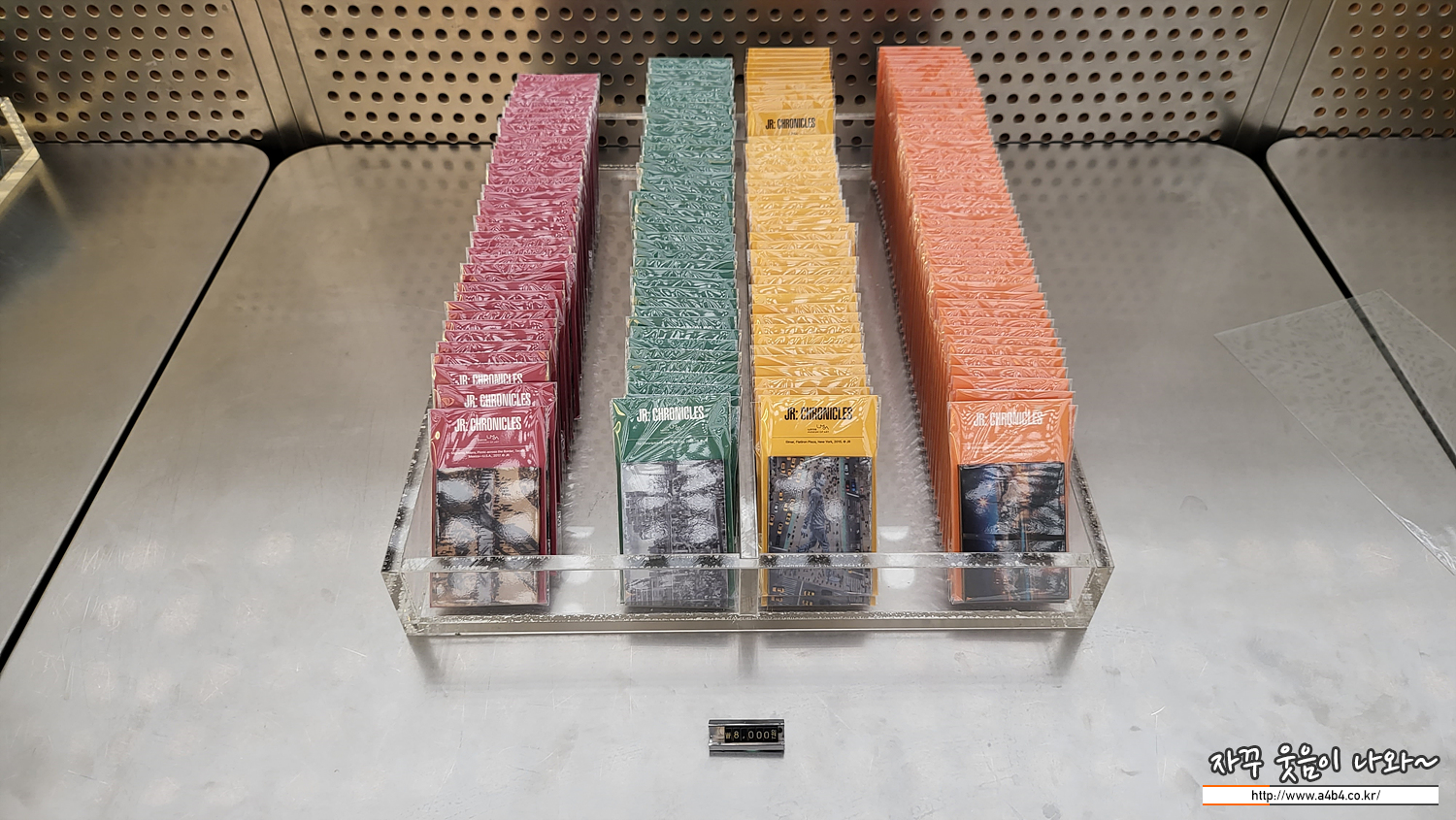 아래는 그가 작업하는 종이샘플이 전시되어 있습니다. 제이알 크로니클스 전시장 곳곳에 설치되어 있는 멀리미디어 영상을 보면 작품의 설치 부터 철수(제거) 과정을 감상할 수 있습니다.