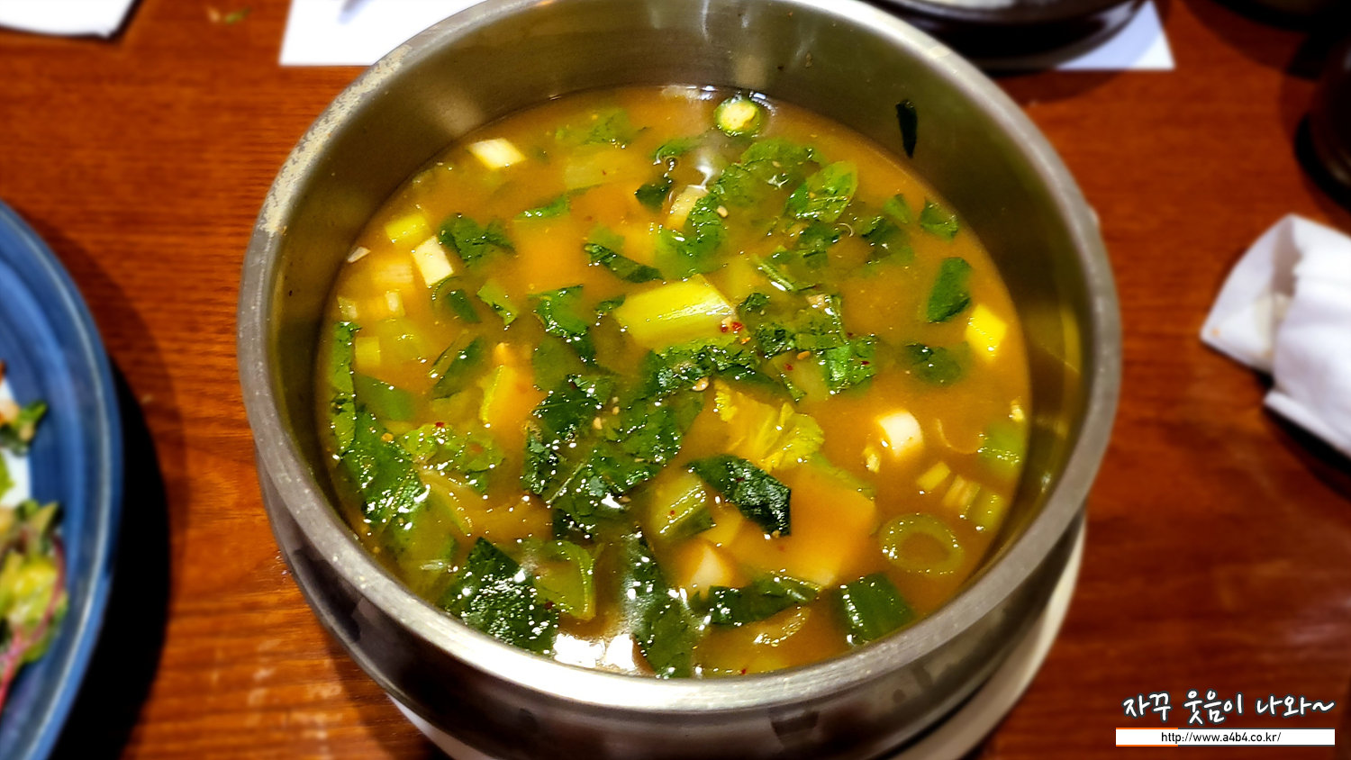 십전대보탕으로 삶아낸 보쌈이라고 합니다. 다행히 한약냄새 싫어하는 일행이 있는데요. 보쌈수육에서 약냄새가 나거나 느끼한 부분은 없습니다. 일반적인 보쌈전문점의 보쌈과 비슷합니다. 수육도 부드럽고 담백합니다.