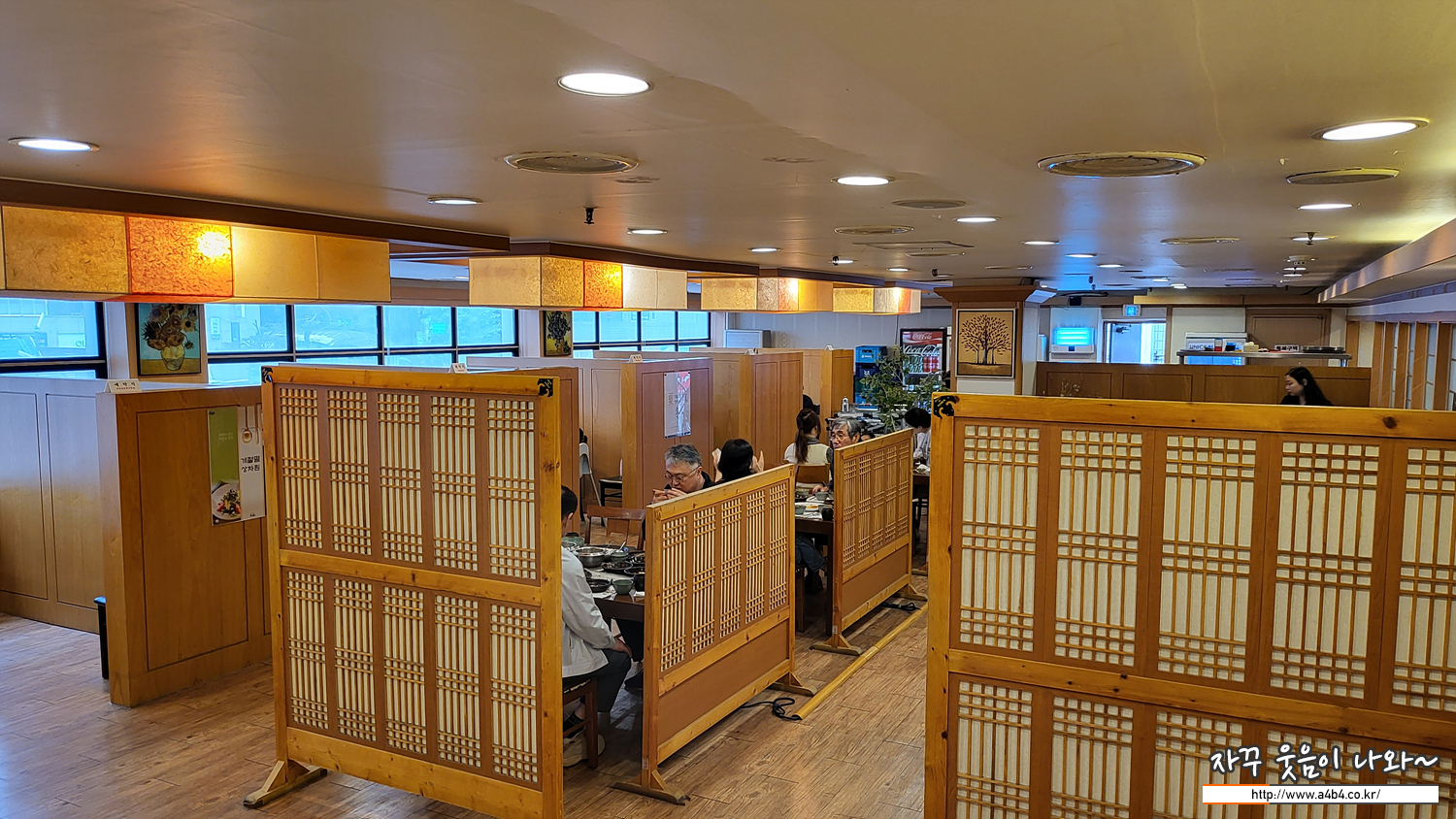 숟가락 반상 마실 한정식 실내입니다. 사진과 같이 룸 형태의 공간은 없지만 약간 어설프게 칸막이들이 설치되어 있습니다.