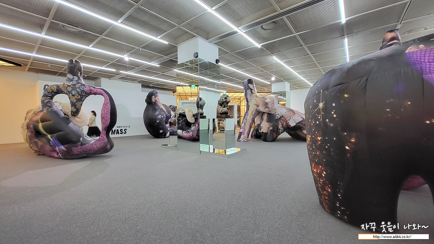 AIR MASS (에어매스) : 기존의 ‘매스패턴스(Masspatterns)’에 대응하는 일련의 관계도를 구축. 내부에 공기를 주입시켜 크기를 확대할 수 있는 인플레이터블(inflatable)을 사용해 거대한 볼륨 조각으로 탄생시켜 에어매스라 명칭한 신작이라고 하네요.