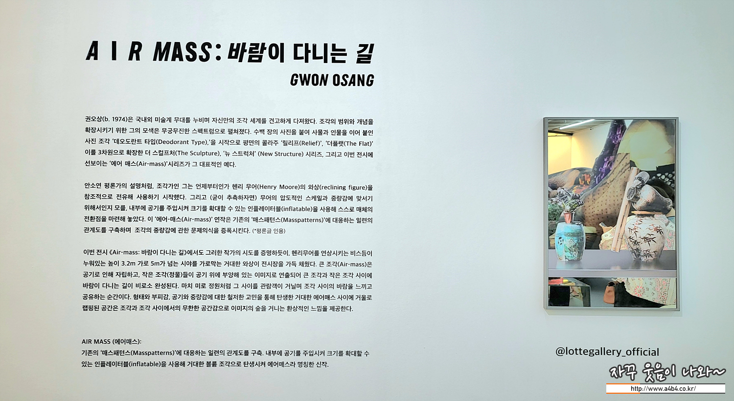 다시 본론으로 돌아와 오늘 소개하는 'A I R MASS: 바람이 다니는 길 권오상 개인전' 소개입니다.