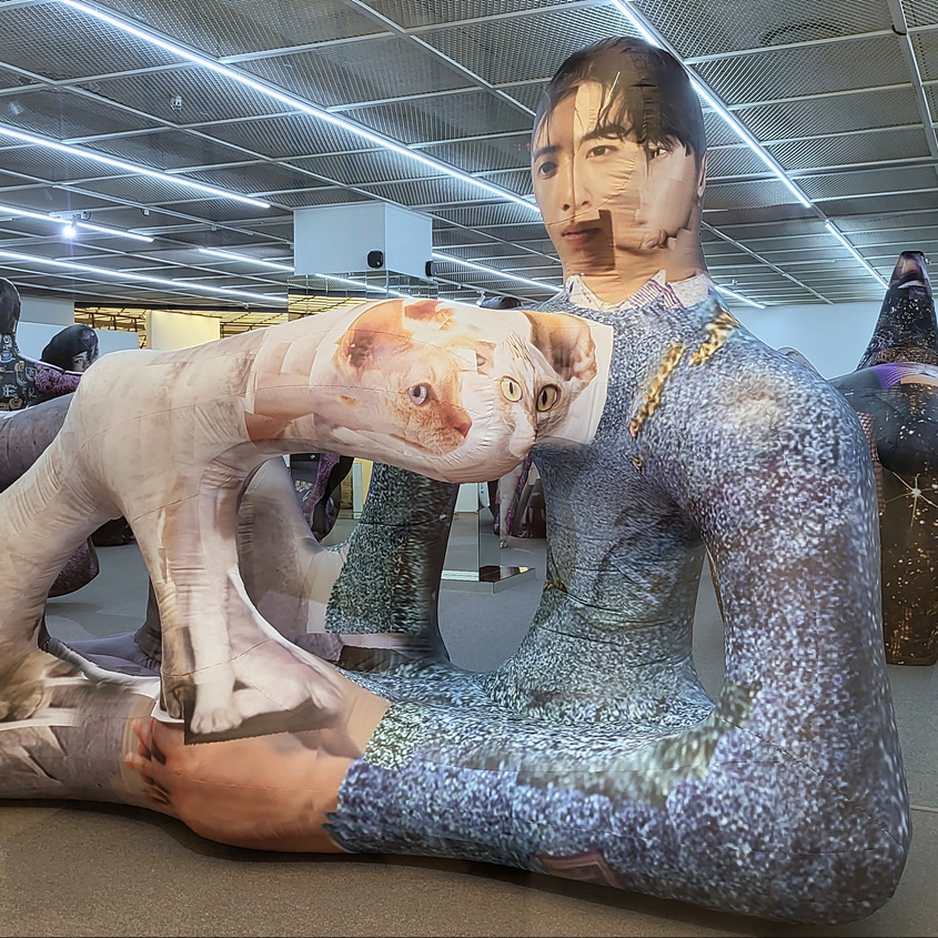 안소연 평론가의 설명처럼, 조각가인 그는 언제부터인가 헨리 무어(Henry Moore)의 와상(reclining figure)을 참조적으로 전유해 사용하기 시작했다. 그리고 (굳이 추측하자면) 무어의 압도적인 스케일과 중량감에 맞서기 위해서인지 모를, 내부에 공기를 주입시켜 크기를 확대할 수 있는 인플레이터블(inflatable)을 사용해 스스로 매체의 전환점을 마련해 놓았다. 이 ‘에어-매스(Air-mass)’ 연작은 기존의 ‘매스패턴스(Masspatterns)’에 대응하는 일련의 관계도를 구축하며, 조각의 중량감에 관한 문제의식을 증폭시킨다. (*평론글 인용)